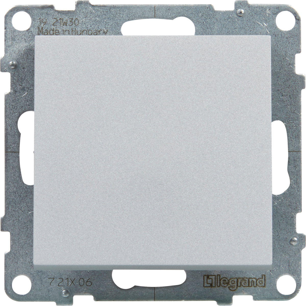 Váltókapcsoló 10 A - 250VA. Rugós vezetékbekötéssel. Alumínium színben. Mechanizmusok fém süllyesztőperemmel és burkolattal együtt. A SUNO kínálatából tetszőlegesen választható keret. Rögzítés csavarok és/vagy körmök segítségével.