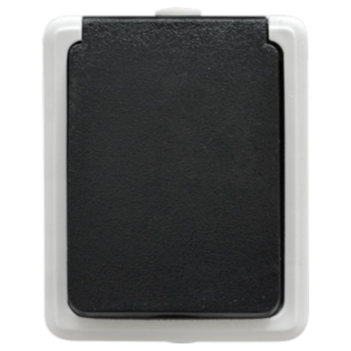 Athens kültéri, falon kívüli dugalj szürke színben, csapófedéllel. IP54 védelem: kültér; por ellen védett (nem károsító mértékű behatolás megengedett); fröccsenő víz ellen védett minden irányból.