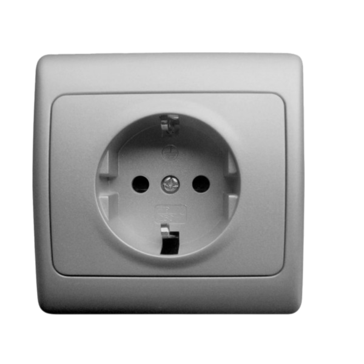 Olympic süllyesztett földelt dugalj kerettel, gyermekvédelemmel sötét szürke színben. IP20 védelemmel, beltéri használatra, 16 A; 250 V; 60Hz.