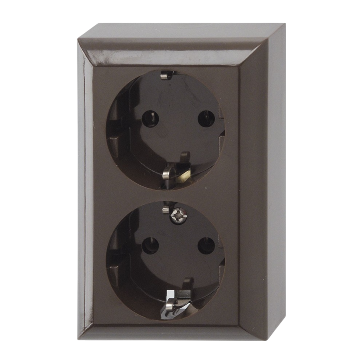 A Gao Business Line barna színű, komplett, földelt csatlakozó aljzat ideális a ház minden helyiségébe. A könnyen szerelhető és egyszerűen telepíthető falon kívüli szerelvény ideális a fő szerelvényezéshez és a házi villanyszerelés egyszerű utólagos szerelvényezéséhez. Kiváló minőségű anyagok felhasználásával készült így hosszú élettartamot garantál. 2 férőhelyes kialakításának köszönhetően egyszerre két eszköz is az áramforrásra csatlakoztatható. 16A, 250V, 60Hz. IP20-as védettségi szintű aljzat.