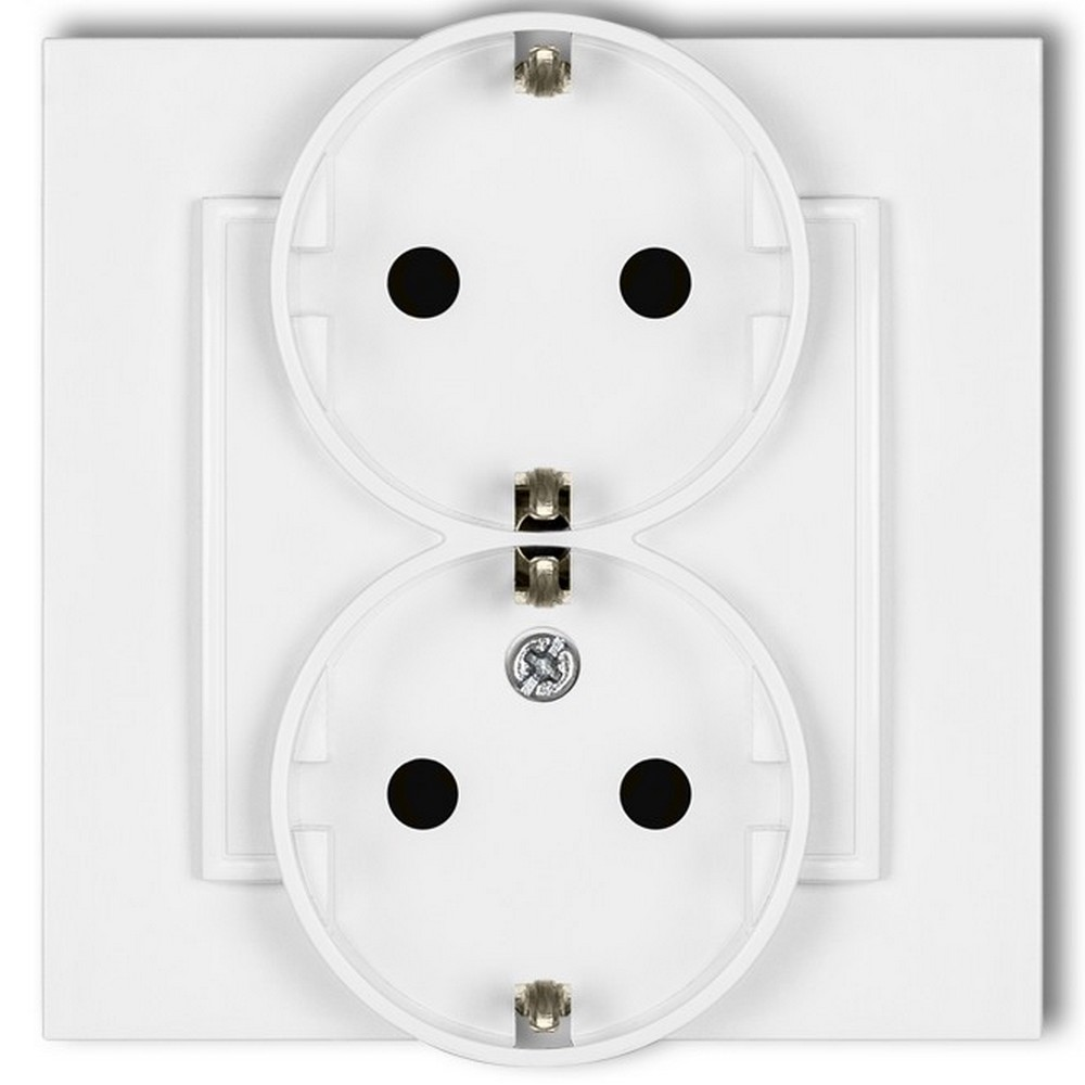 Fehér színű mini dupla dugalj kerettel. Nemcsak funkcionális, hanem elegáns is. Dupla mechanizmusának köszönhetően az aljzat fokozza a használhatóságot. Feszültség 230-250V. Áramerősség 16A.