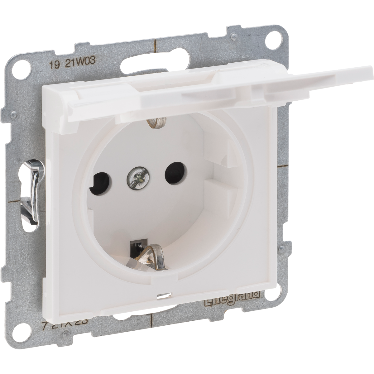 Földelt csatlakozóaljzatok 16 A - 250VA. 2P+F csatlakozóaljzat biztonsági zsaluval - IP 21 csapófedéllel. Rugós vezetékbekötéssel. Fehér színben. Mechanizmusok fém süllyesztőperemmel és burkolattal együtt. A SUNO kínálatából tetszőlegesen választható keret. Rögzítés csavarok és/vagy körmök segítségével.