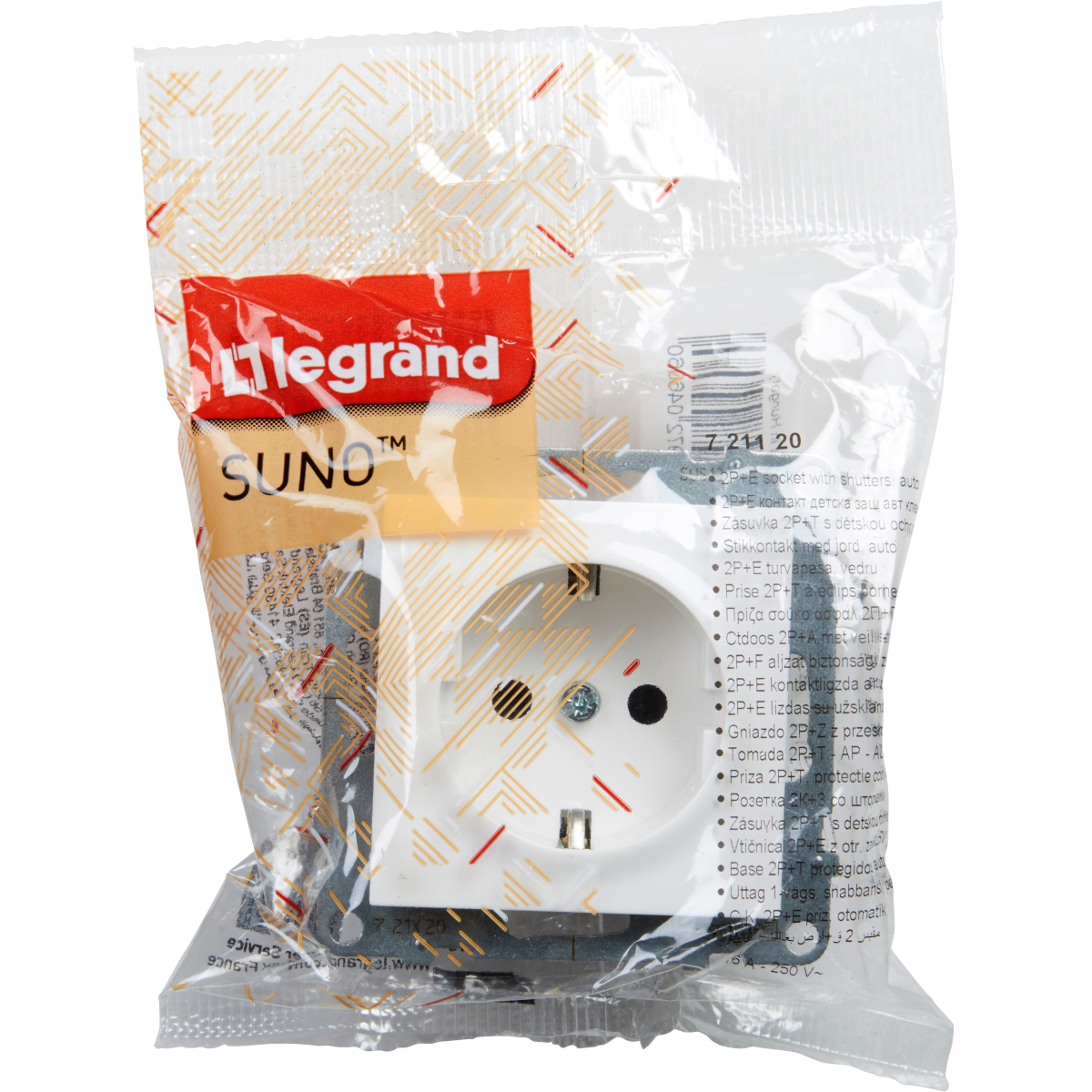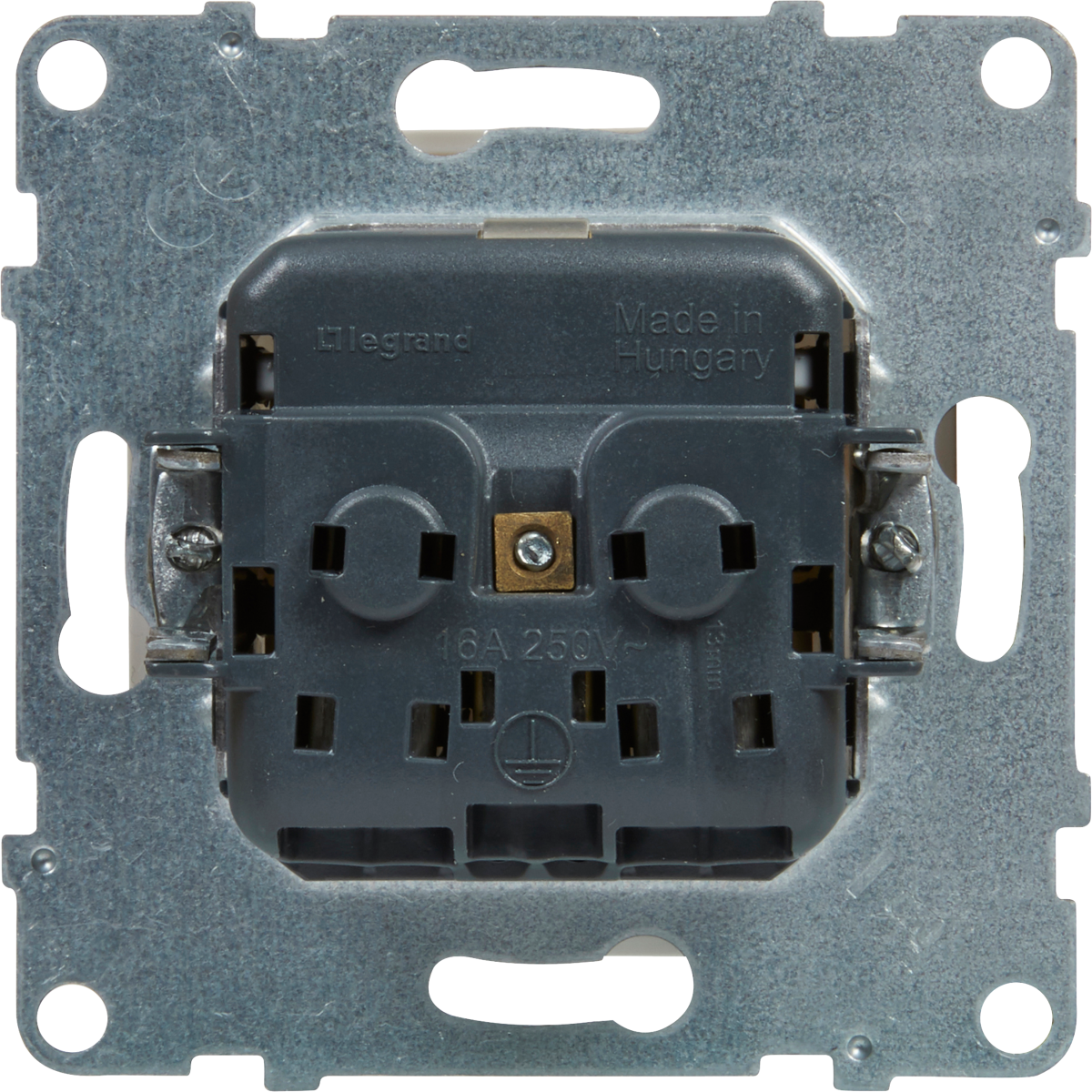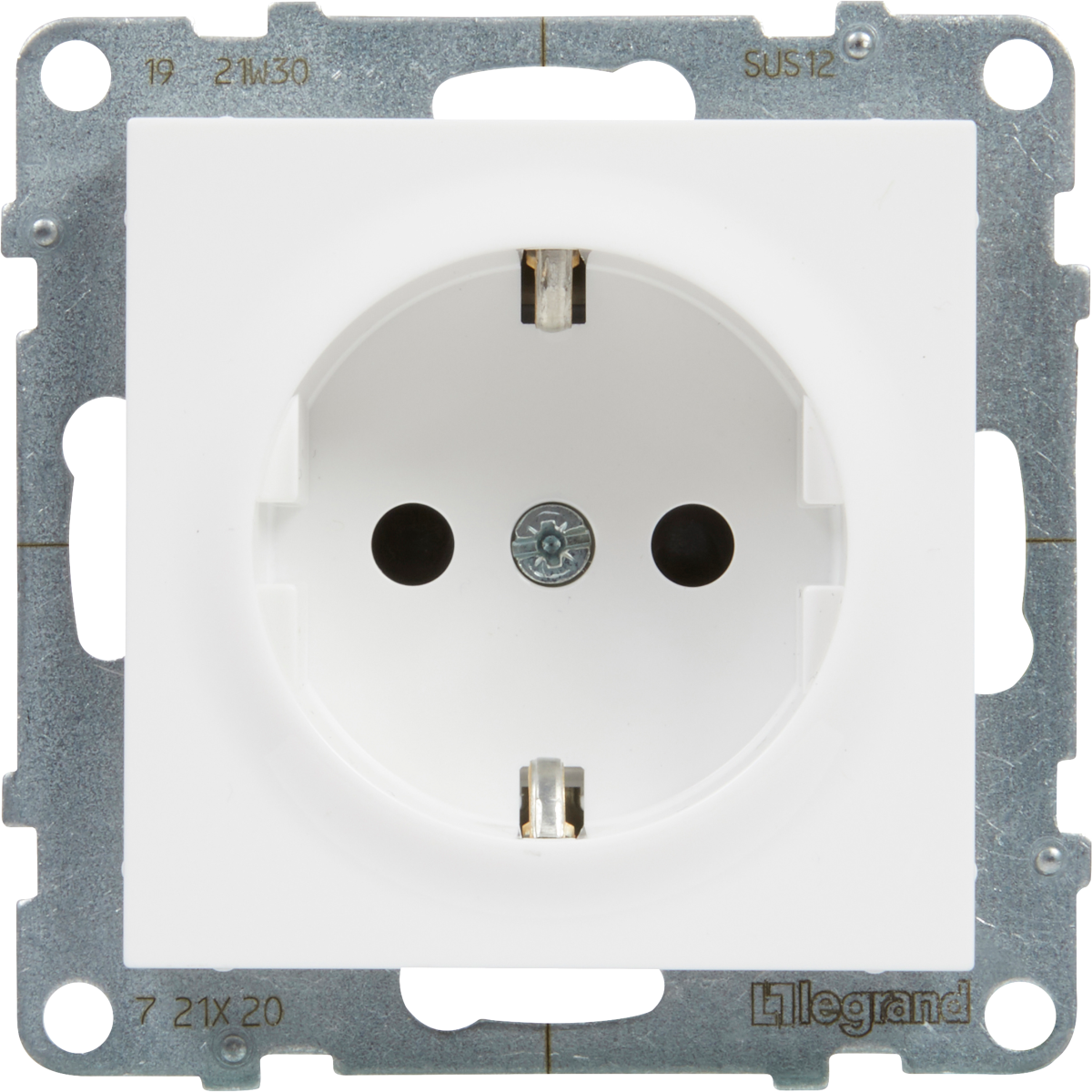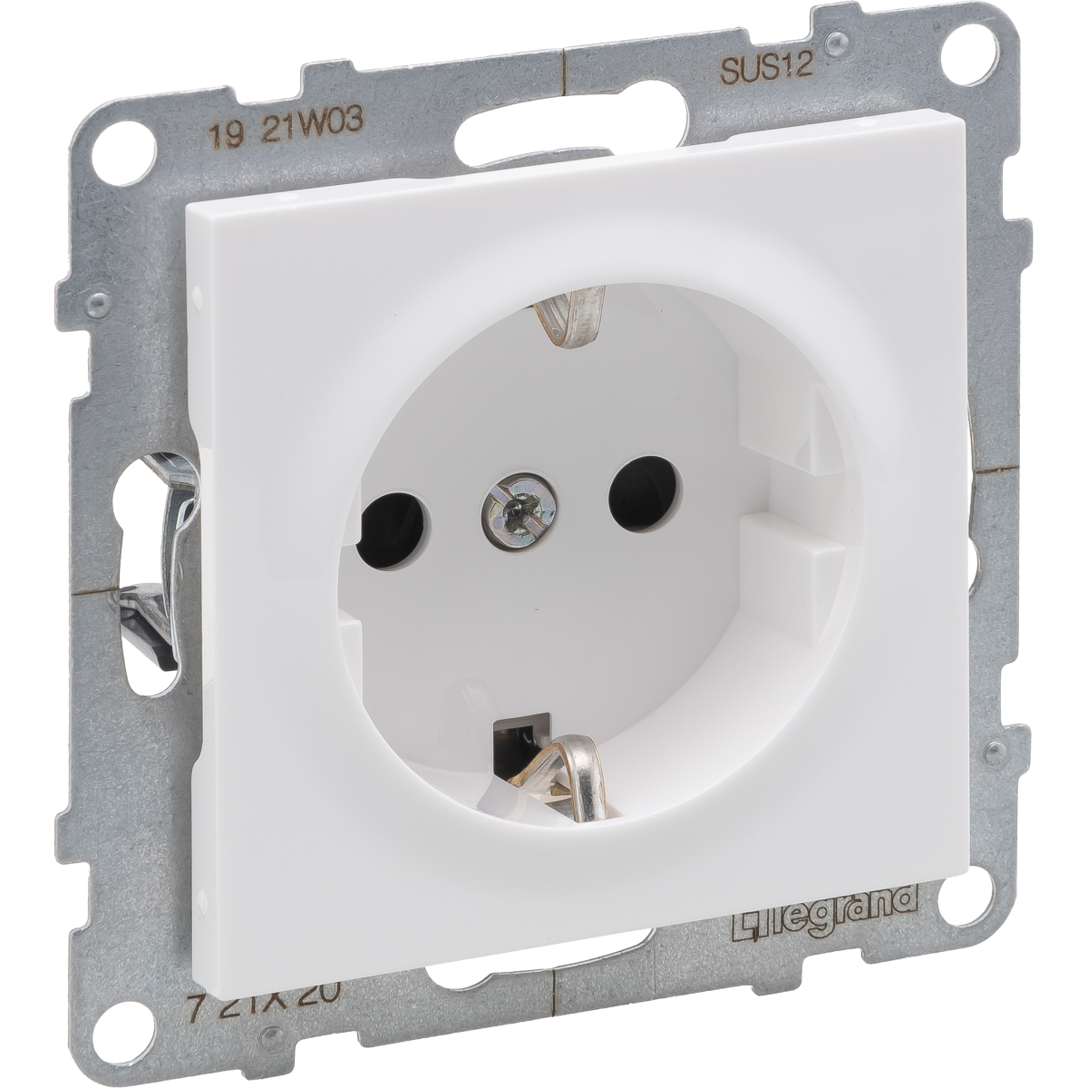Földelt csatlakozóaljzatok 16 A - 250 VA. 2P+F csatlakozóaljzat biztonsági zsaluval. Rugós vezetékbekötéssel. Fehér színben. Mechanizmusok fém süllyesztőperemmel és burkolattal együtt. A SUNO kínálatából tetszőlegesen választható keret. Rögzítés csavarok és/vagy körmök segítségével.