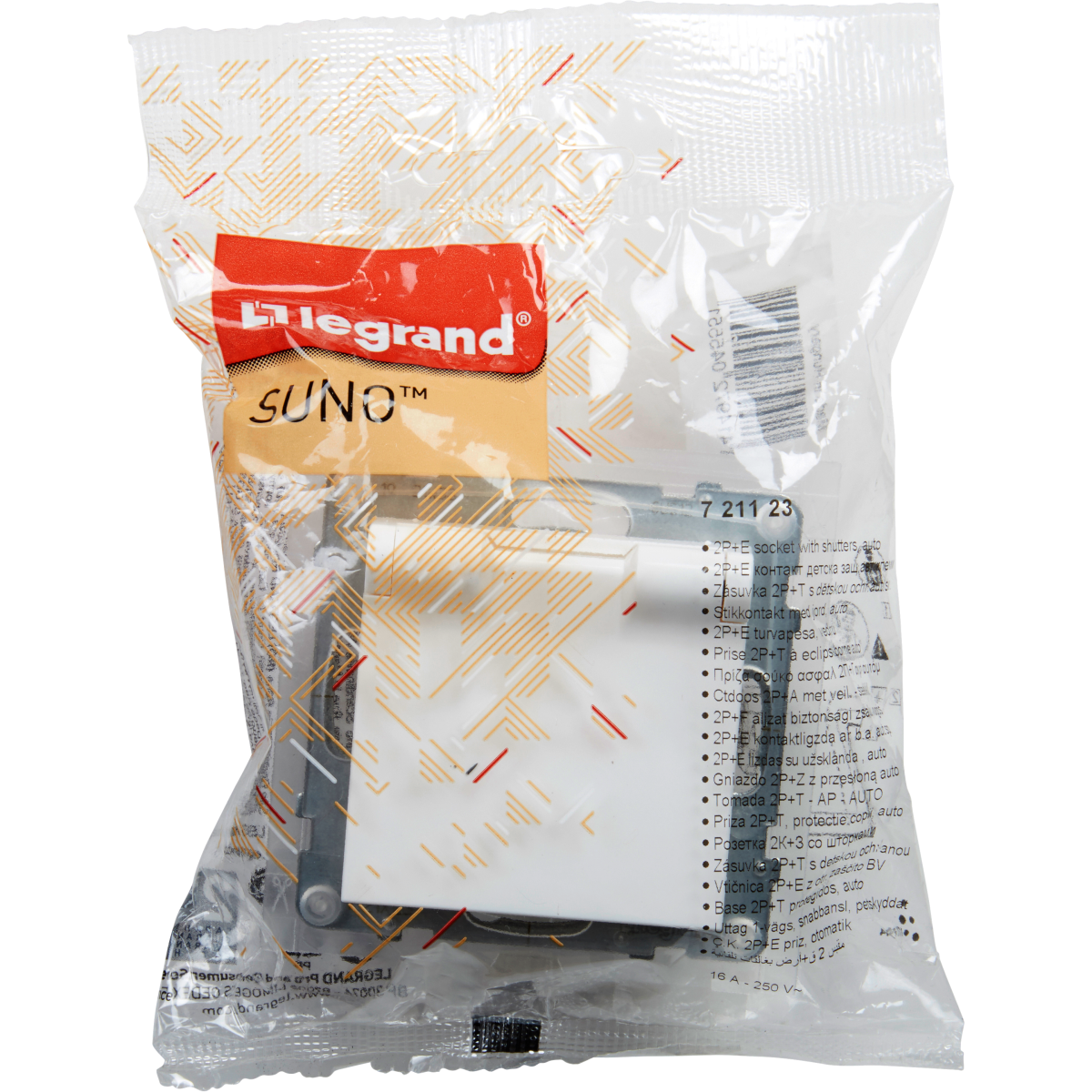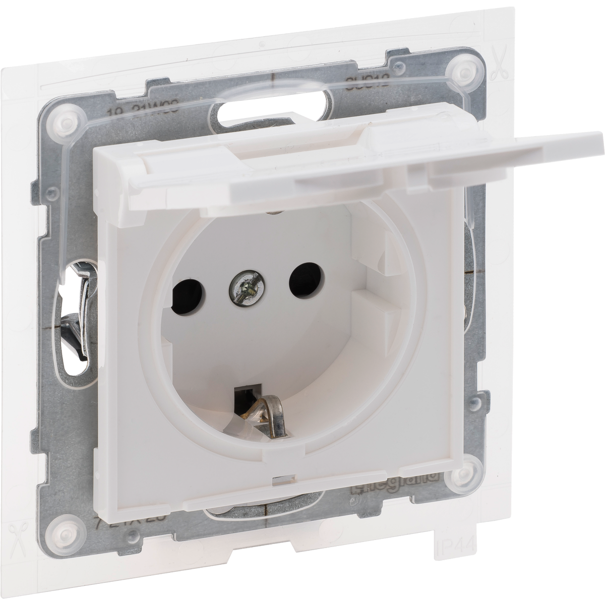 Földelt csatlakozóaljzatok 16 A - 250 VA. 2P+F csatlakozóaljzat biztonsági zsaluval - IP 44 csapófedéllel. Rugós vezetékbekötéssel. Fehér színben. Mechanizmusok fém süllyesztőperemmel és burkolattal együtt. A SUNO kínálatából tetszőlegesen választható keret. Rögzítés csavarok és/vagy körmök segítségével.