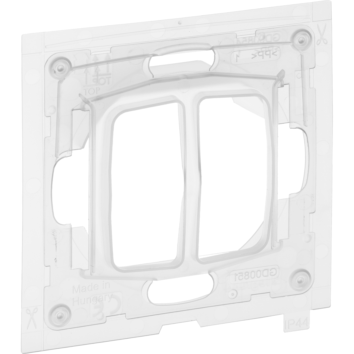 IP 44-es kiegészítő védőburkolat kapcsolók és nyomók IP 44-essé tételéhez (normál kerettel). Két billentyűvel rendelkező kapcsolóhoz. Mechanizmusok fém süllyesztőperemmel és burkolattal együtt. A SUNO kínálatából tetszőlegesen választható keret. Rögzítés csavarok és/vagy körmök segítségével.