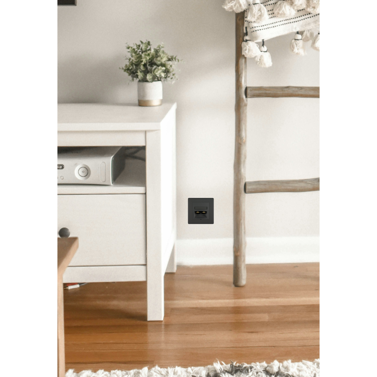 A MENTAVILL MV5 egy kettős RJ45-ös aljzat, amely IP20-as védettséggel rendelkezik, így védett a szilárd tárgyak behatolása ellen, de nem vízálló. Ez az aljzat fekete színben kapható, süllyesztett kivitelben készült. Ideális megoldás lehet otthoni vagy irodai hálózati csatlakozásokhoz, ahol fontos a megbízható és biztonságos adatátvitel.