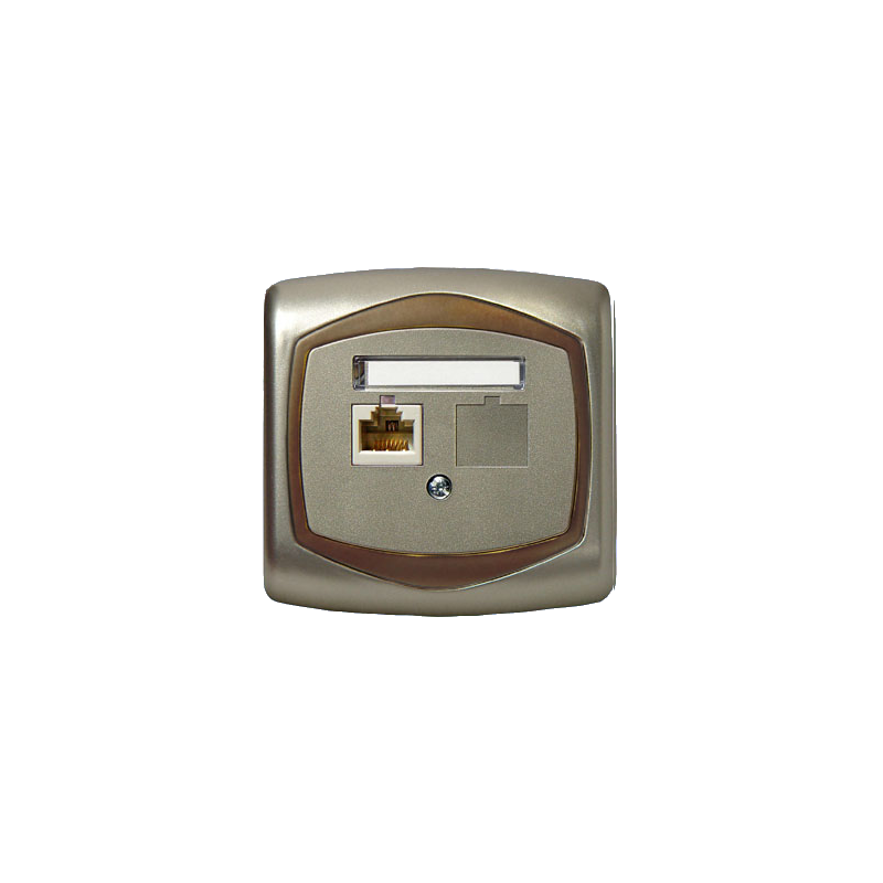 Ton számítógép csatlakozó szatén színben. Egy vagy két személyi számítógép csatlakoztatására alkalmas. Elhelyezése korlátlan. Csavaros bekötésű. 8 pólusú csatlakozóval. Anyaga műanyag.
