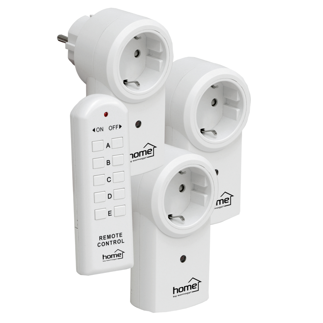 Távirányítható hálózati aljzat készlet 3+1. Bővíthető a Somogyi Elektronic Kft által forgalmazott TH 1 hálózati aljzattal. - hatótávolság nyílt terepen: 25 m - rádiós összeköttetés: 433,9 MHz - egy távirányító 5-féle aljzat vezérlésére képes (A, B, C, D, E) - bővíthető rendszer: 32 beállítható csatorna - LED visszajelző - gyermekzár - a távirányító tápellátása: 1x23A (12 V) elem (tartozék) - A készülék alkalmas az Európai Unió tagállamaiban való használatra.