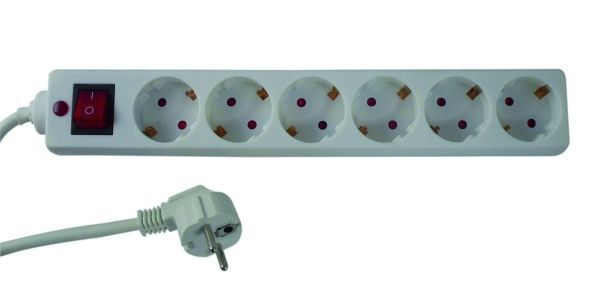 Asztali 6-os elosztó kapcsolóval fehér színben. Túlfeszültségvédelemmel és gyermekvédelemmel ellátva. - 1,4m H05VV-F 3G1.0 mm? kábellel - 16 A; 250 V; maximum terhelés: 3500 W
