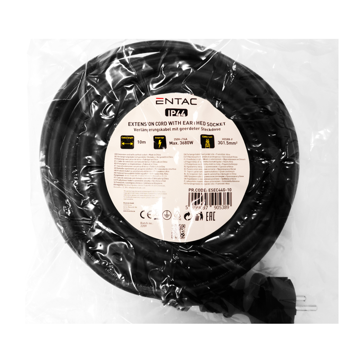 Az Entac IP44-es lengő hosszabbítok a munkahelyek és háztartások elengedhetetlen eszközei. Segítségükkel áramot biztosíthat minden elektronikus eszközének, még abban az esetben is, ha az áramforrás egy távolabbi helyen található. Földelt foglalatos hosszabbító fekete színben, 10 méteres, 3G1.5 kábeltípus. Az IP44-es hosszabbítók kültéri használatra is megfelelnek, por és vízálló tulajdonságuknak köszönhetően.