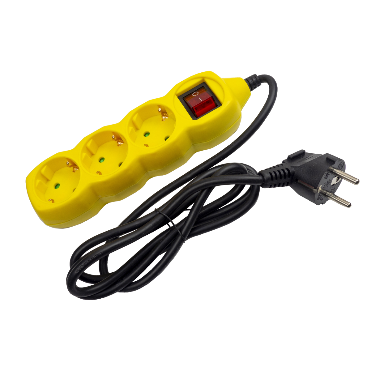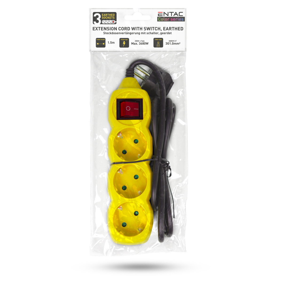 ENTAC S1 SZÍNES ELOSZTÓ 3 FOGLALAT KAPCSOLÓVAL 1,5M SÁRGA
