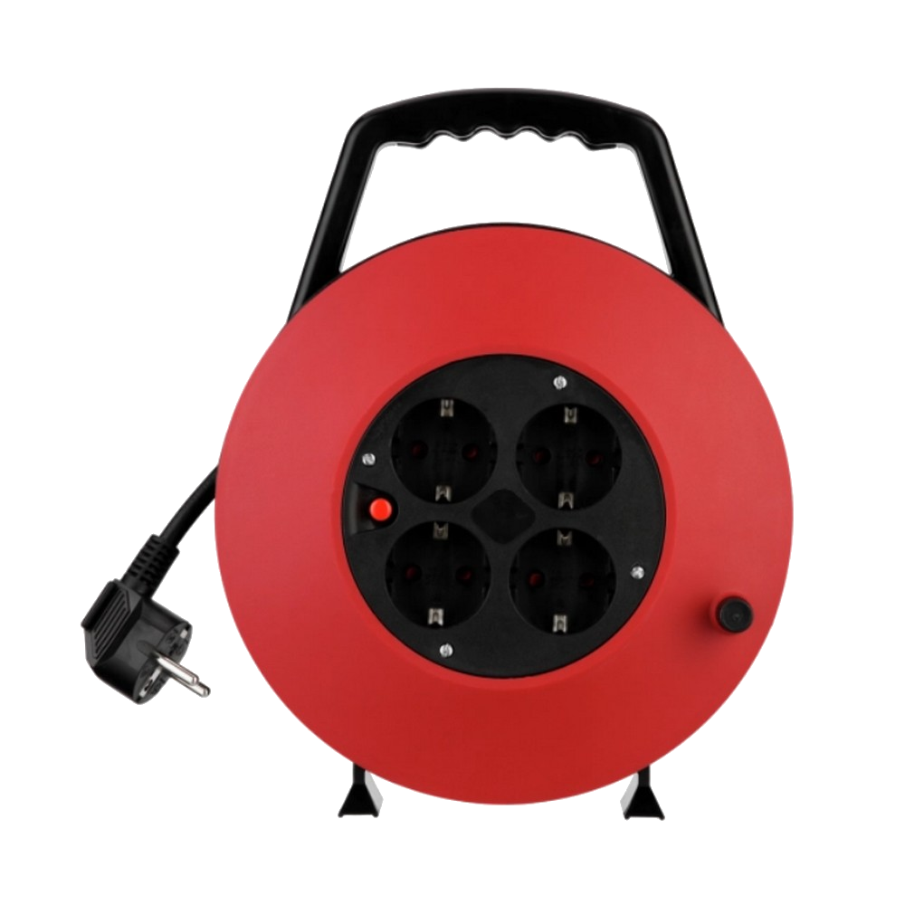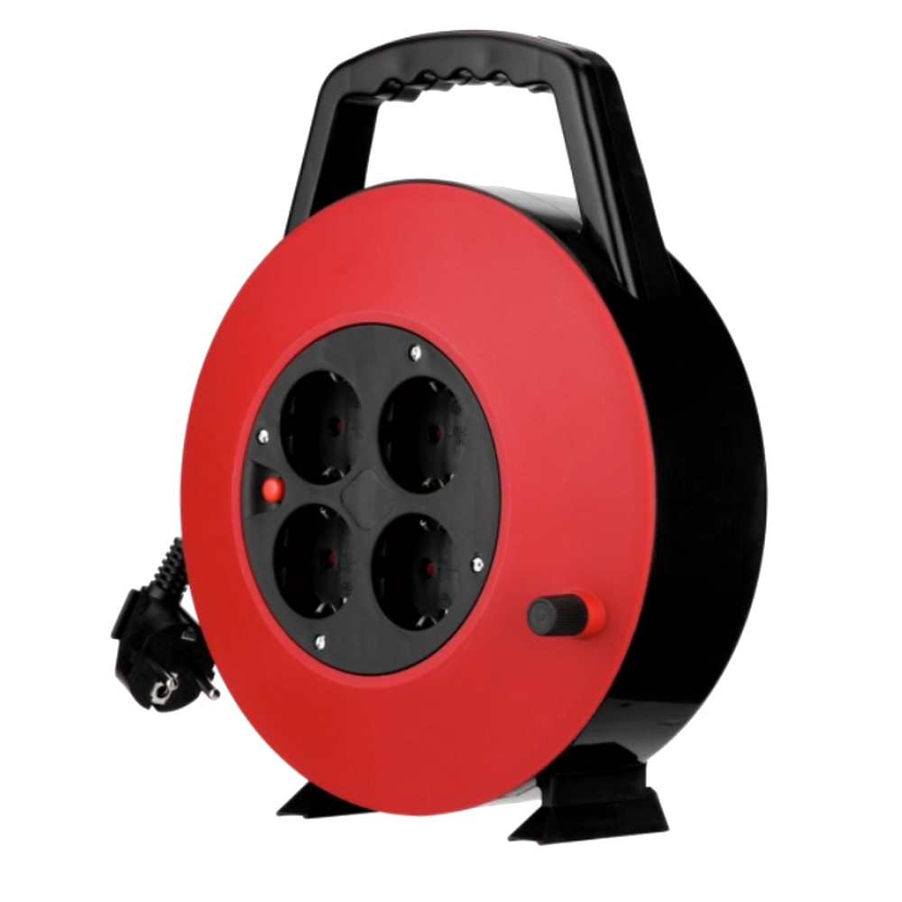 KÁBELBOX MŰANYAG 10M 4DUGALJ IP20 H05VVF3X1,0MM2 FEKETE/PIROS