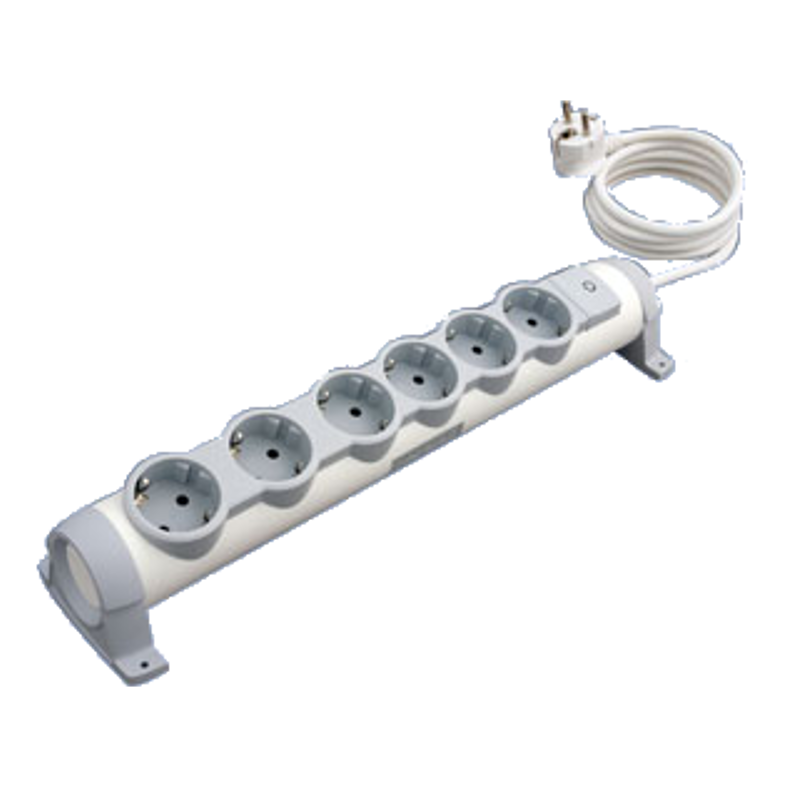 Csatlakozó aljzat,fehér-szürke -6x2p+t 1,5m con
