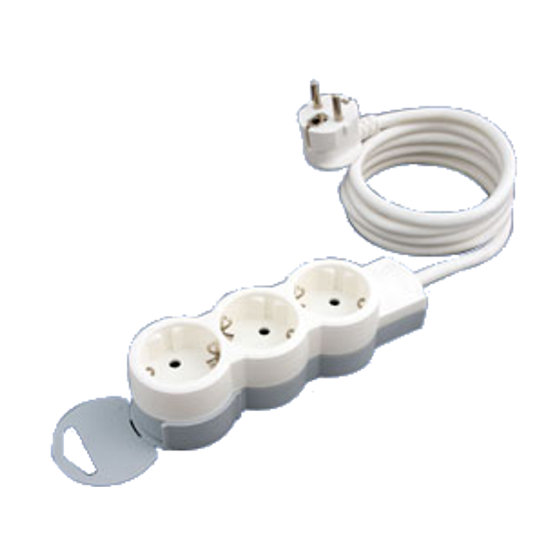 Csatlakozó aljzat,fehér-szürke -3x2p+t 3m st