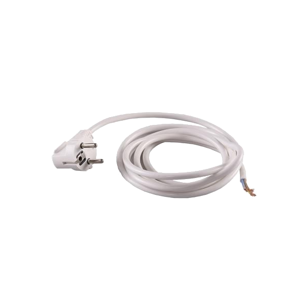 Fehér színű kettős szigetelt PVC csatlakozó kábel, egyik végén 2+F földelt csatlakozó dugasszal. Max. 16 A/230 V, 5 m. Kis és közepes mechanikai igénybevételekre használható, flexibilis bekötésekhez, különféle gépekhez. Vizes, nedves helyiségekbe korlátozottan alkalmas, vízbe tartósan nem meríthető, azaz többnyire otthonokban, konyhákban és irodaterületeken használatosak. Közepes mechanikai igénybevétel mellett elektromos gépek (mint pl. légkondicionáló berendezések, hűtőgép stb.) bekötéséhez, de futó készülékekhez abban az esetben alkalmazható, ha nem áll fenn a veszély, hogy a vezeték forró alkatrészekhez hozzáérhet. Kültéri használatra nem alkalmas.