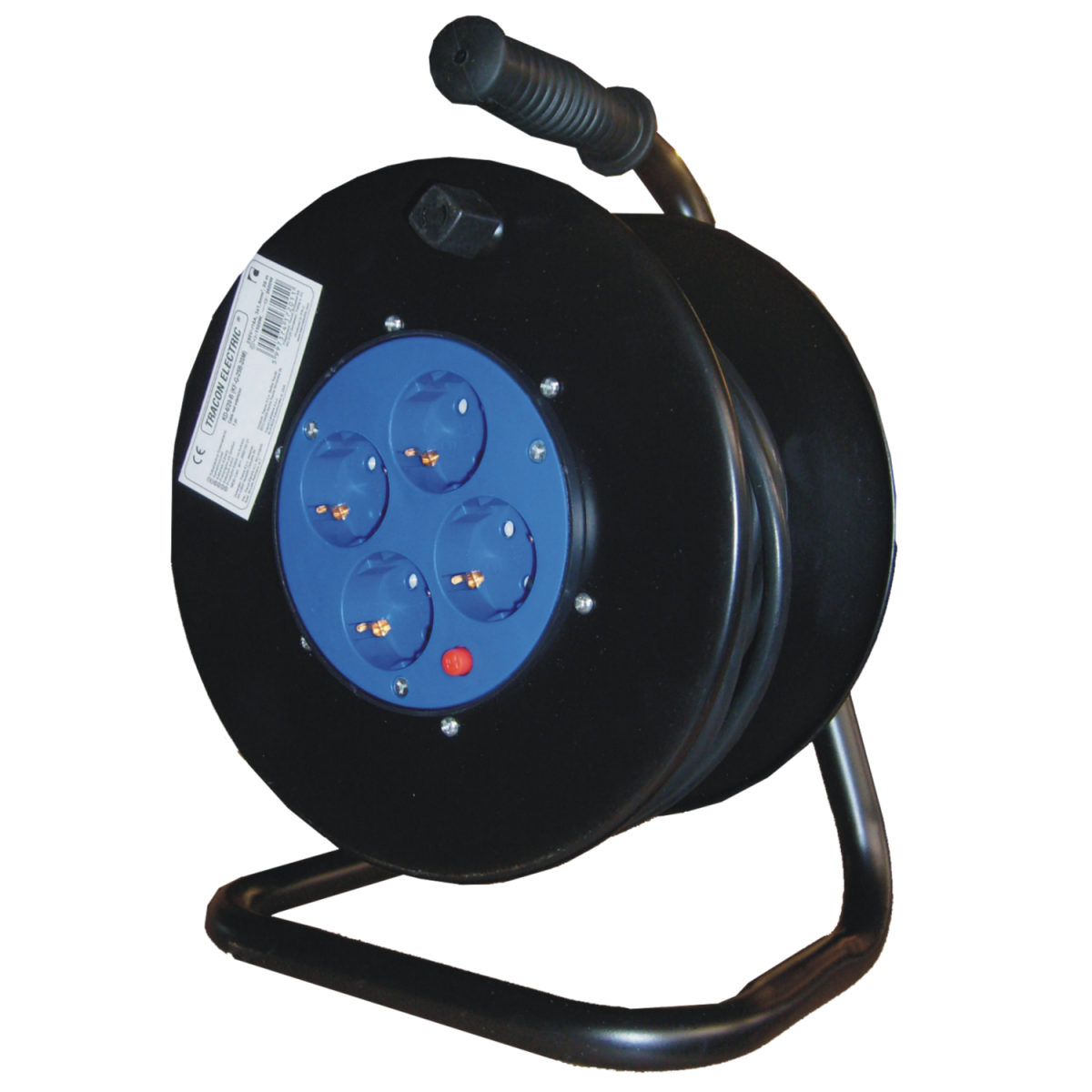 KÁBELDOB 4db védőérintkezős csatlakozóaljzat Túlterhelés elleni védelem Fémdobos kábeldob Fém vázzal 30 m 3×1,5mm2 H05VV-F (MT)