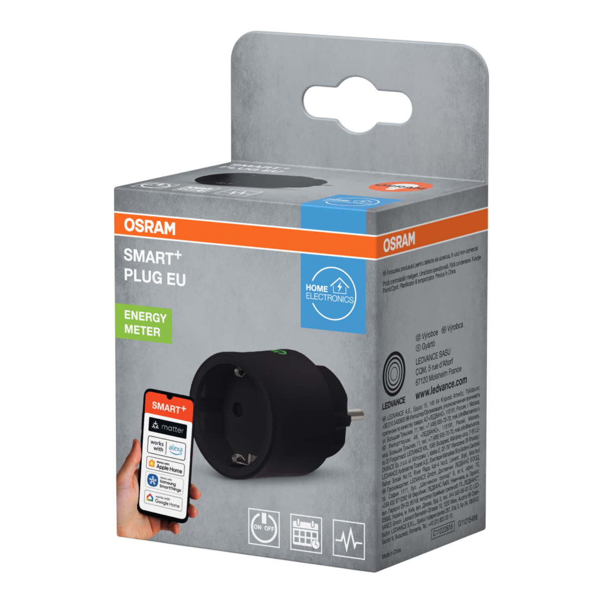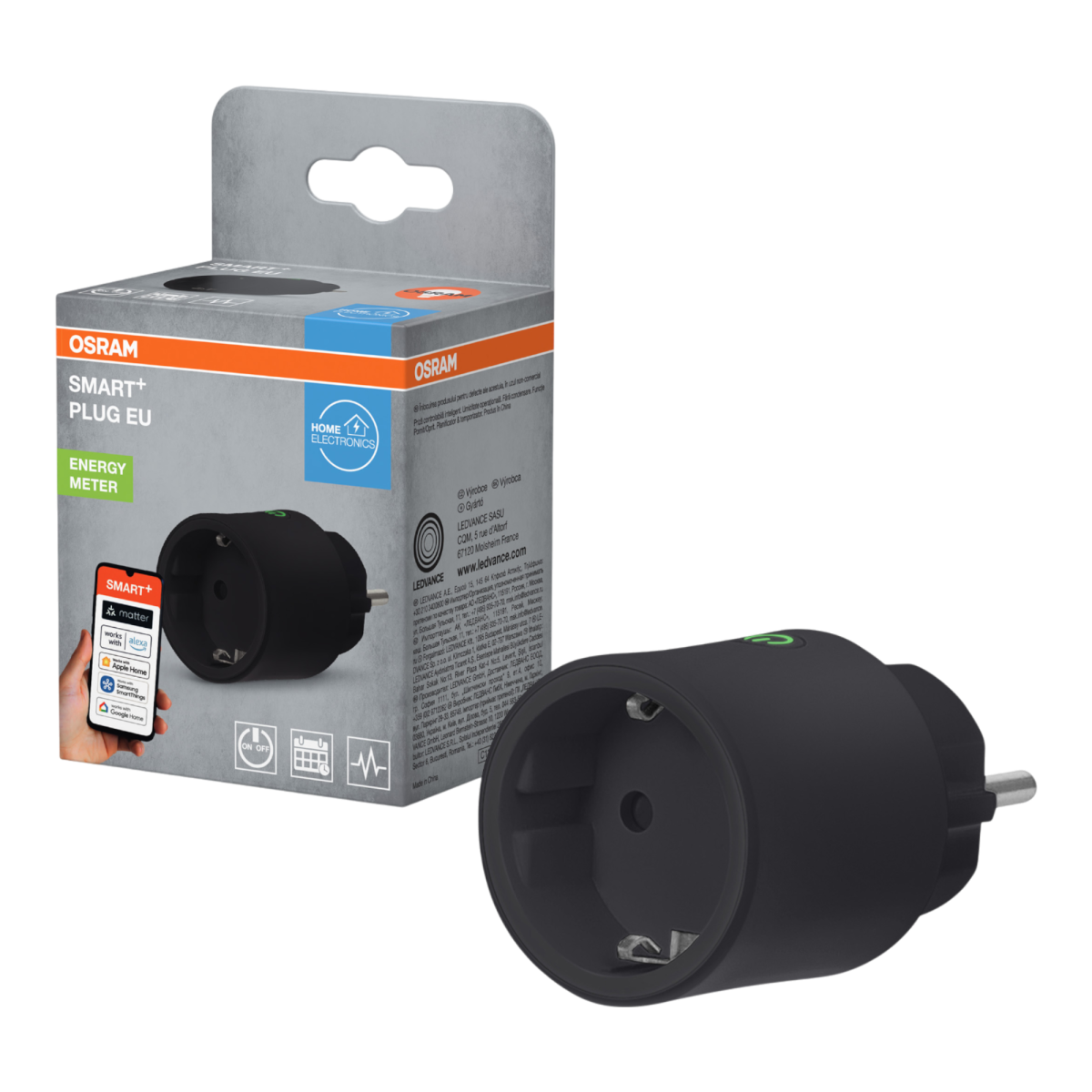 Osram Smart+ Matter okos konnektor – beltéri, 2300 W / 10 A, fekete
