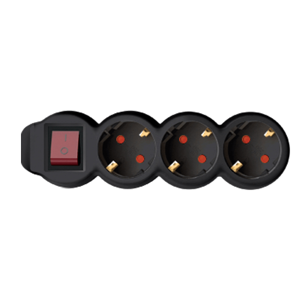 Kapcsolós hálózati elosztó 3db aljzattal ellátva, melyet egy fő kapcsolóval áramtalanítani tud. A biztonságos használat érdekében IP 20 védelemmel és gyermekvédelemmel ellátott. A fekete színű elosztó 1,5m hosszú H05VV-F 3G1,0 mm2 kábellel felszerelt. Maximum 3500W-ig terhelhető.