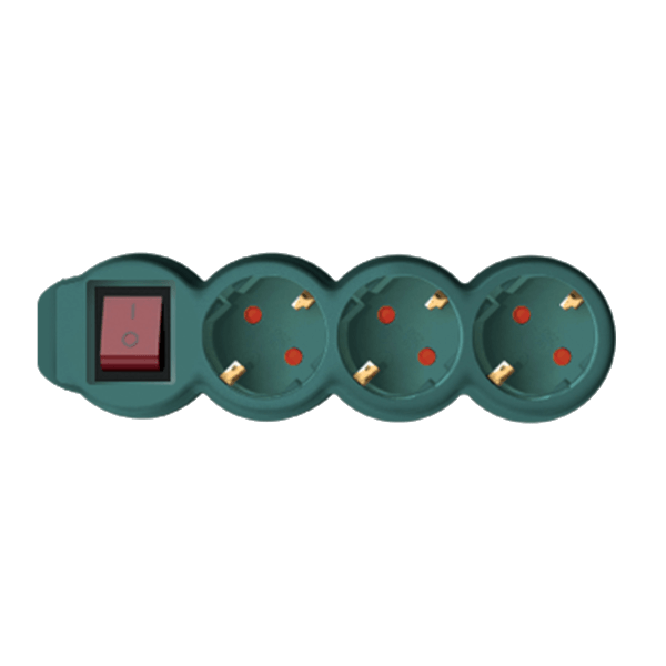 Gyermekvédelemmel ellátott aljzatok H05VV-F 3G1,5mm2 kábel, IP20 kivitel, 250 V~/16 A/3500 W, aljzatok száma 3, 3 m-es kivitelben és zöld színben értékesítjük.