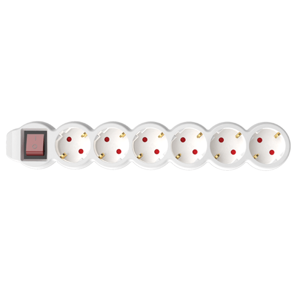 6- os hálózati elosztó fehér színben, aljzatok száma 6 - 3 m - 3x1,0 mm2 kábel, IP20 kivitel, 250 V~ / 10 A / 2300 W, kapcsolóval