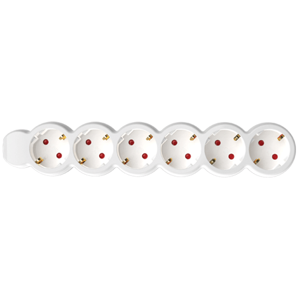 6 - os hálózati elosztó fehér színben, ajzatok száma 6 - 5 m -3x1,0 mm2 kábel, IP20 kivitel, 250 V~ / 10 A / 2300 W