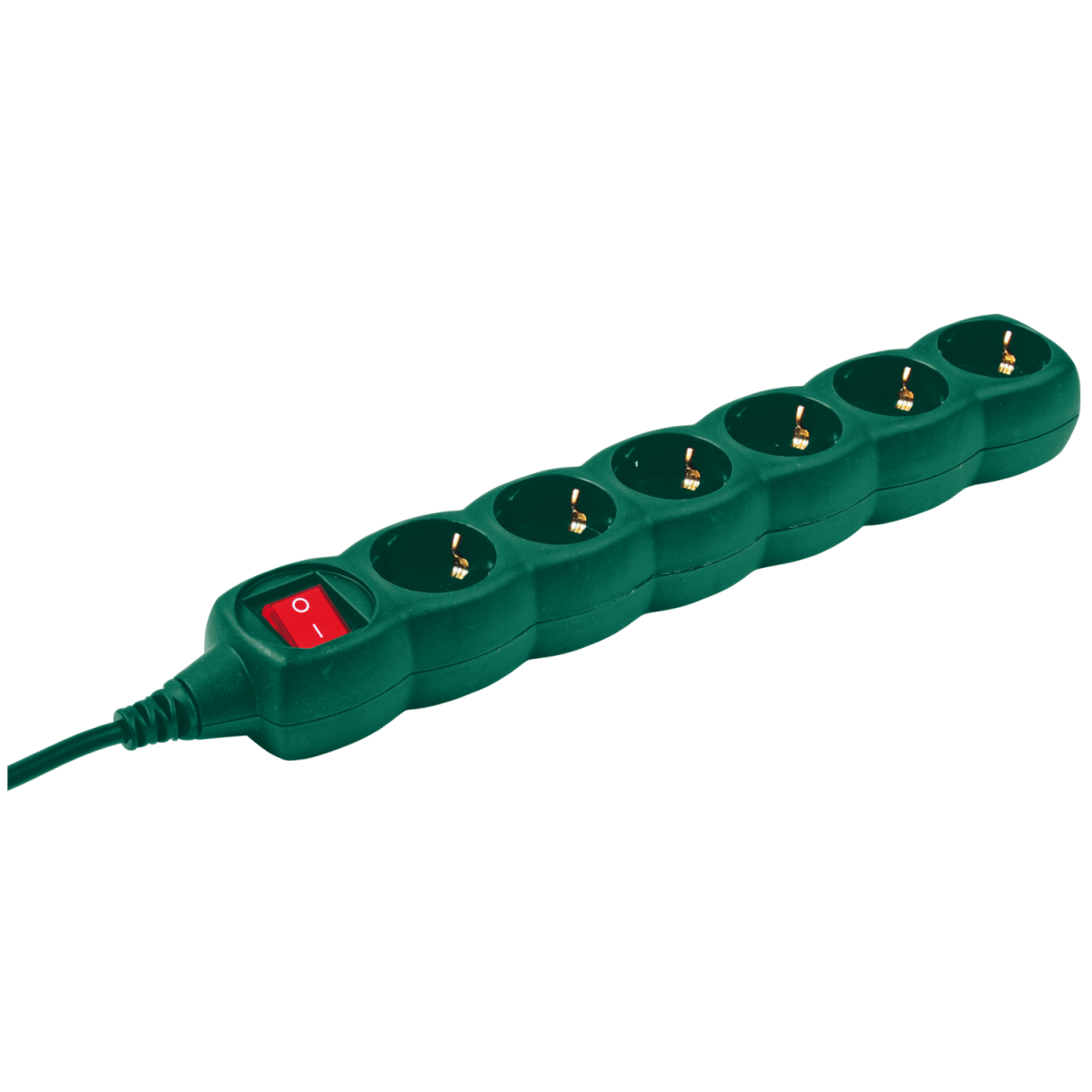- H05VV-F 3G1,0 mm2 kábel, IP20 kivitel - 250 V~ / 10 A / 2300 W - aljzatok száma: 6 - 3 m, 3 x 1,0 mm2 - zöld