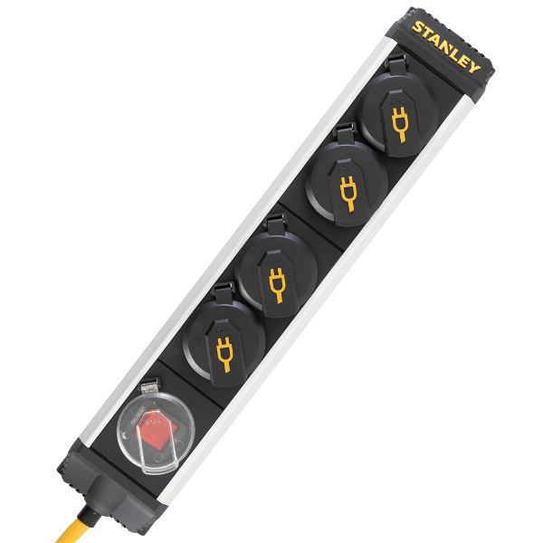 A STANLEY 4-es hálózati elosztó kapcsolóval. A STANLEY hálózati elosztó alumínium háza masszív és robusztus kialakításának köszönhetően hosszú élettartamú lesz akár az építőiparban vagy otthoni alkalmazás során. Elsősorban szakembereknek ajánljuk, rendszeres használat mellett is. Az 5 m-es vezeték feltűnő sárga színű a jó láthatóság érdekében. IP 44-es védelemmel ellátott.