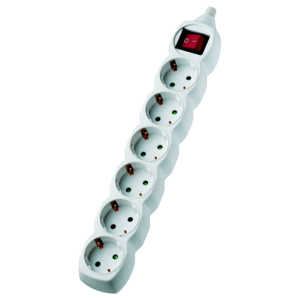 6-os, 1,4m-es, védőérintkezős elosztó kapcsolóval, fehér színben.