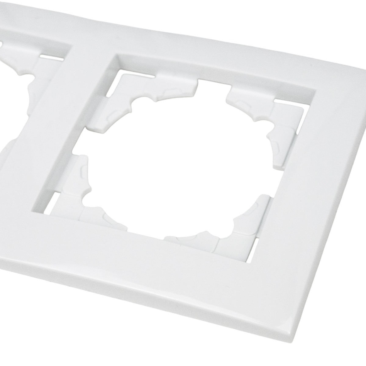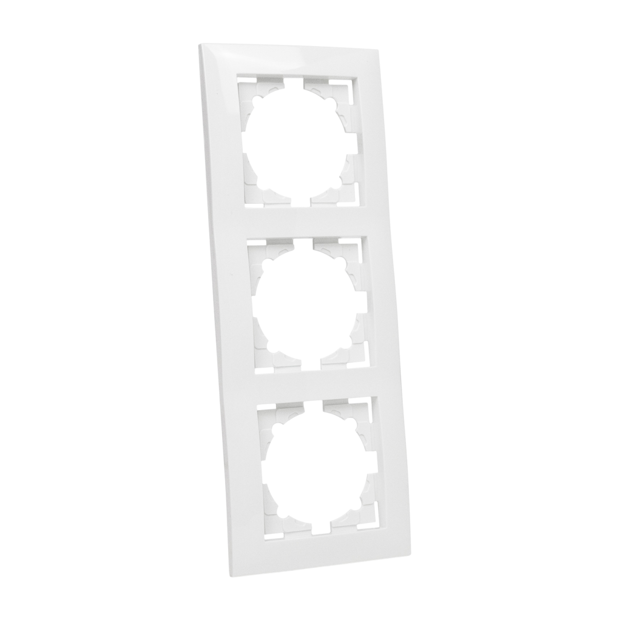 A fehér színű ENTAC Arnold hármas falikeret egyszerű, minimalista kialakításának köszönhetően könnyedén illeszkedik bármilyen belső térbe, lehetővé téve a kapcsolók és aljzatok praktikus, és esztétikus elrendezését.