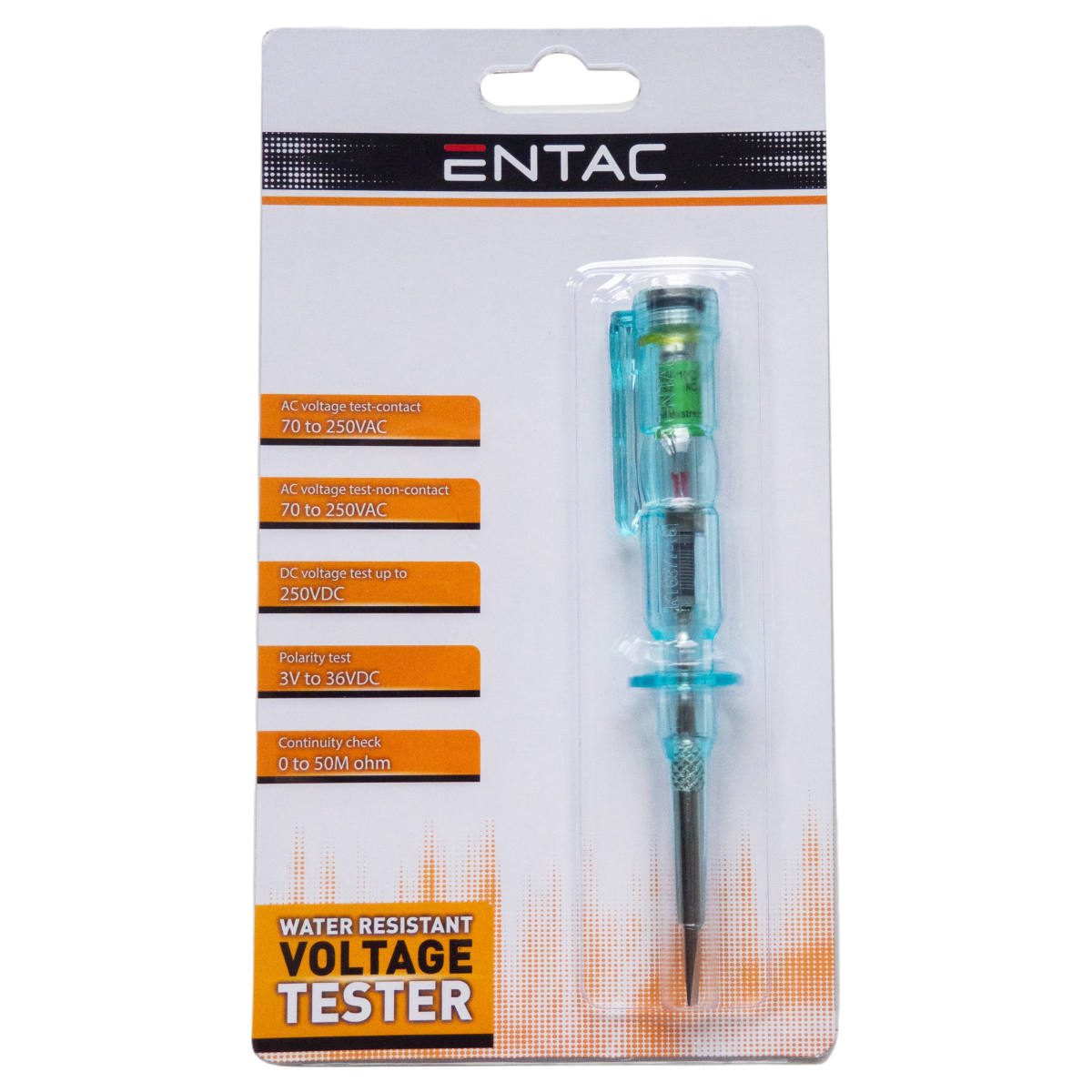 Az Entac vízálló fázisceruza praktikus és megbízható választás, ha gyors feszültségellenőrzésre van szükség. Akár érintkezéses, akár érintésmentes mérésről van szó, ez a multifunkciós eszköz hatékonyan segít a mindennapi elektromos munkák során. Alkalmas AC és DC feszültség tesztelésére, polaritásvizsgálatra, valamint folytonosság ellenőrzésére is.