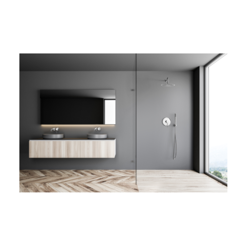 FERRO ONE falsík alatti egyfunkciós csaptelep. Tartalmazza a falba építendő és a látható egységet is. A modern fürdőszoba design egyik legújabb trendje a falsík mögötti zuhanycsaptelepek használata, amelyek nemcsak esztétikailag vonzóak, hanem praktikus megoldást is nyújtanak a térkihasználásra.