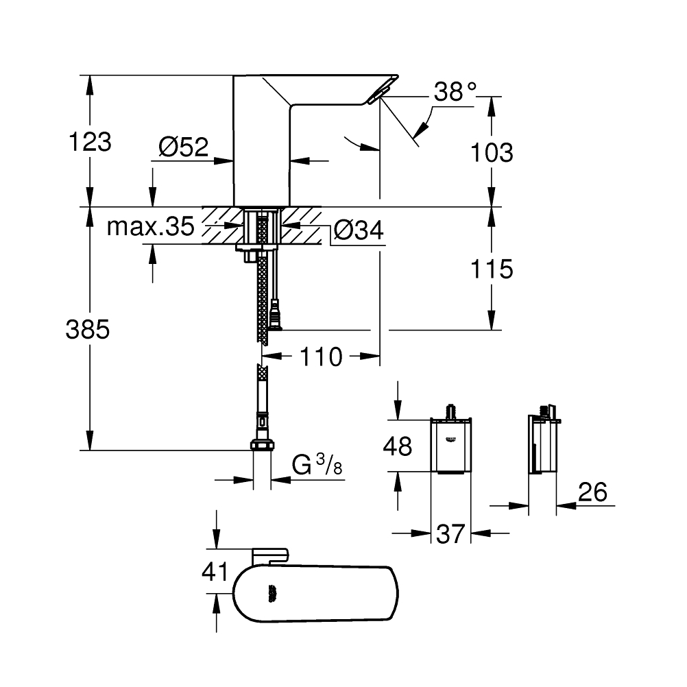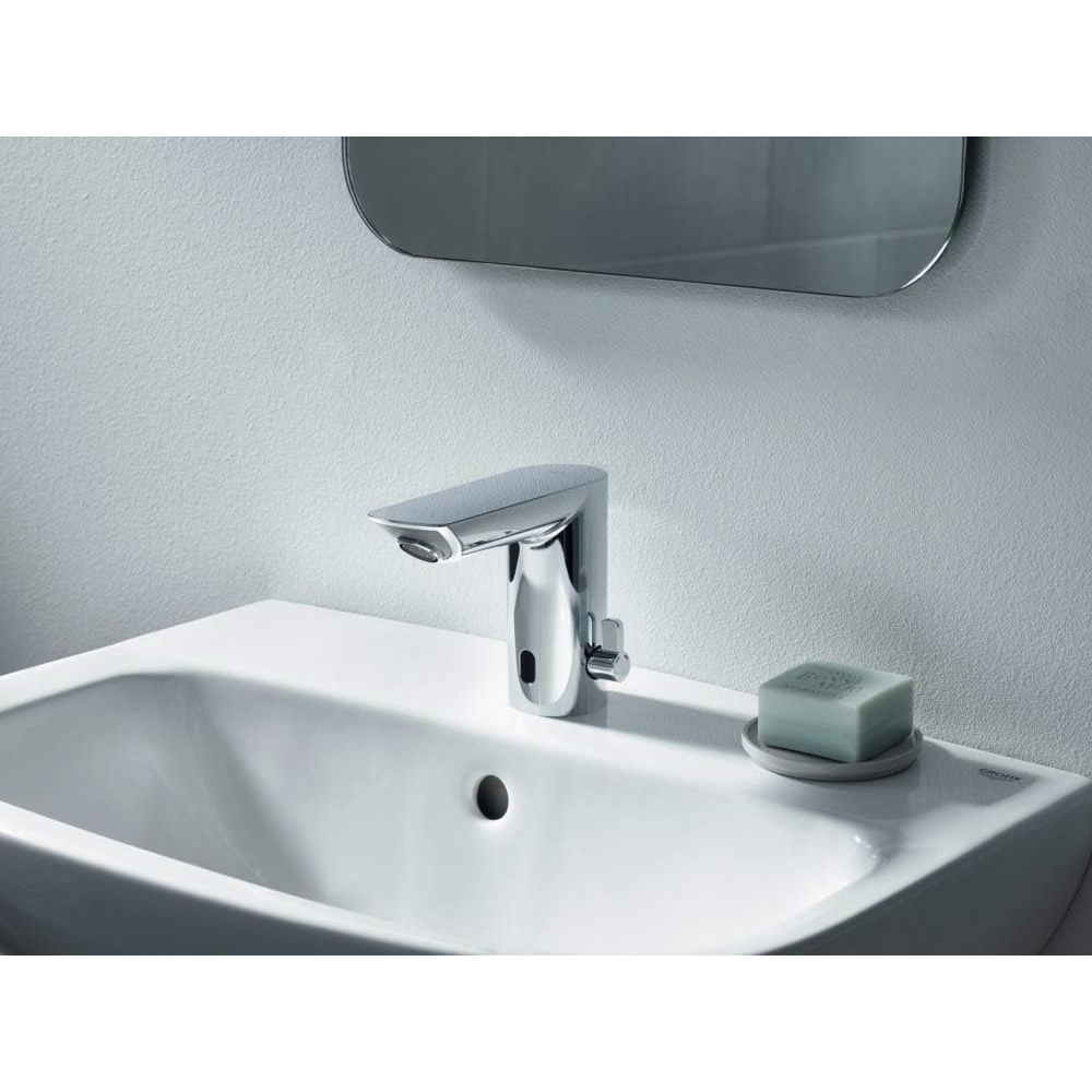 A Grohe Bau Cosmopolitan 6V infrás mosdó csaptelep modern, érintésmentes megoldást kínál magas higiéniai igényű környezetekbe. Az infravörös érzékelő automatikus működést biztosít, miközben a vízfogyasztás kontrollált marad. A korszerű elektronika, a krómozott felület és a fejlett higiéniai funkciók megbízható, professzionális felhasználást tesznek lehetővé.