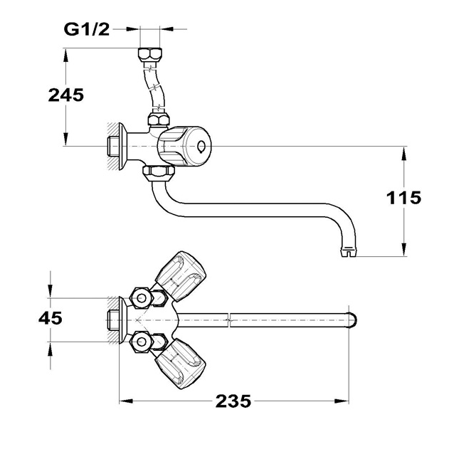 MOFÉM EUROSZTÁR BOJLER CSAPTELEP FALI FELSŐ BEKÖTÉSŰ, KÉTKAROS