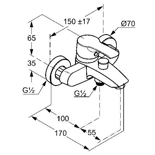 Kludi Maris egykaros kádcsaptelep - NA 15 - fali kivitel - perlátor: M 24 x 1 - kerámia vezérlőegység - visszafolyás-gátló - automatikus kád/zuhany-váltó - z-csatlakozó- króm felület