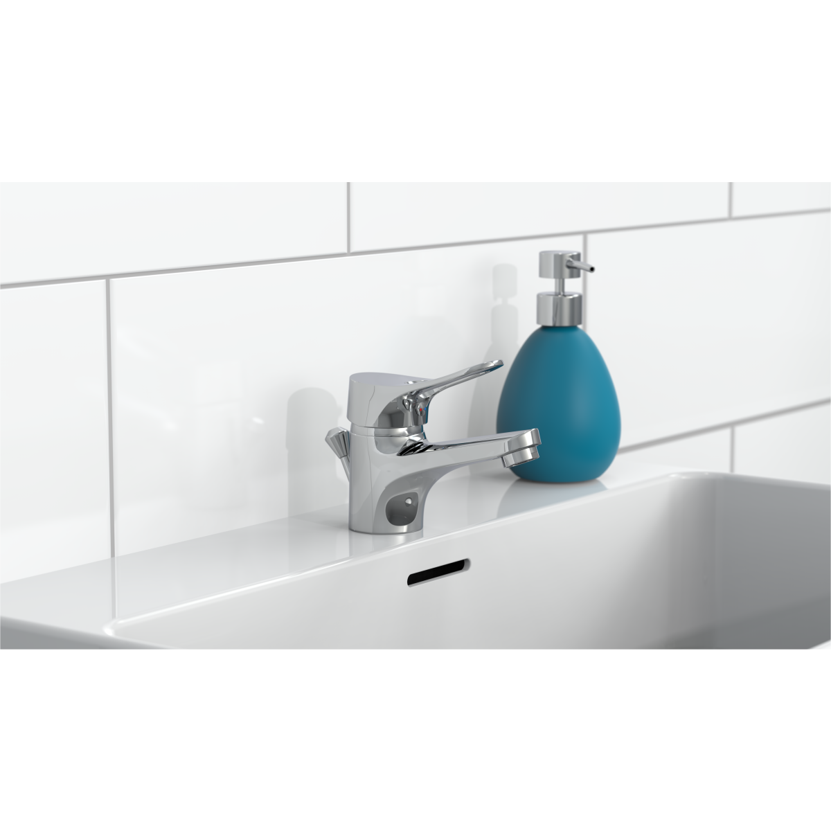 A Verona egykaros krómozott mosdócsaptelep letisztult megjelenést és megbízható működést kínál a mindennapi fürdőszobai használathoz. A 40 mm-es kerámiabetét precíz, csepegésmentes szabályozást biztosít, a krómozott felület pedig elegáns, könnyen tisztán tartható megoldást nyújt. A csaptelep bekötőcső és leeresztő szelep nélkül érkezik, így a kiegészítők szabadon választhatók az egyedi igényeknek megfelelően.