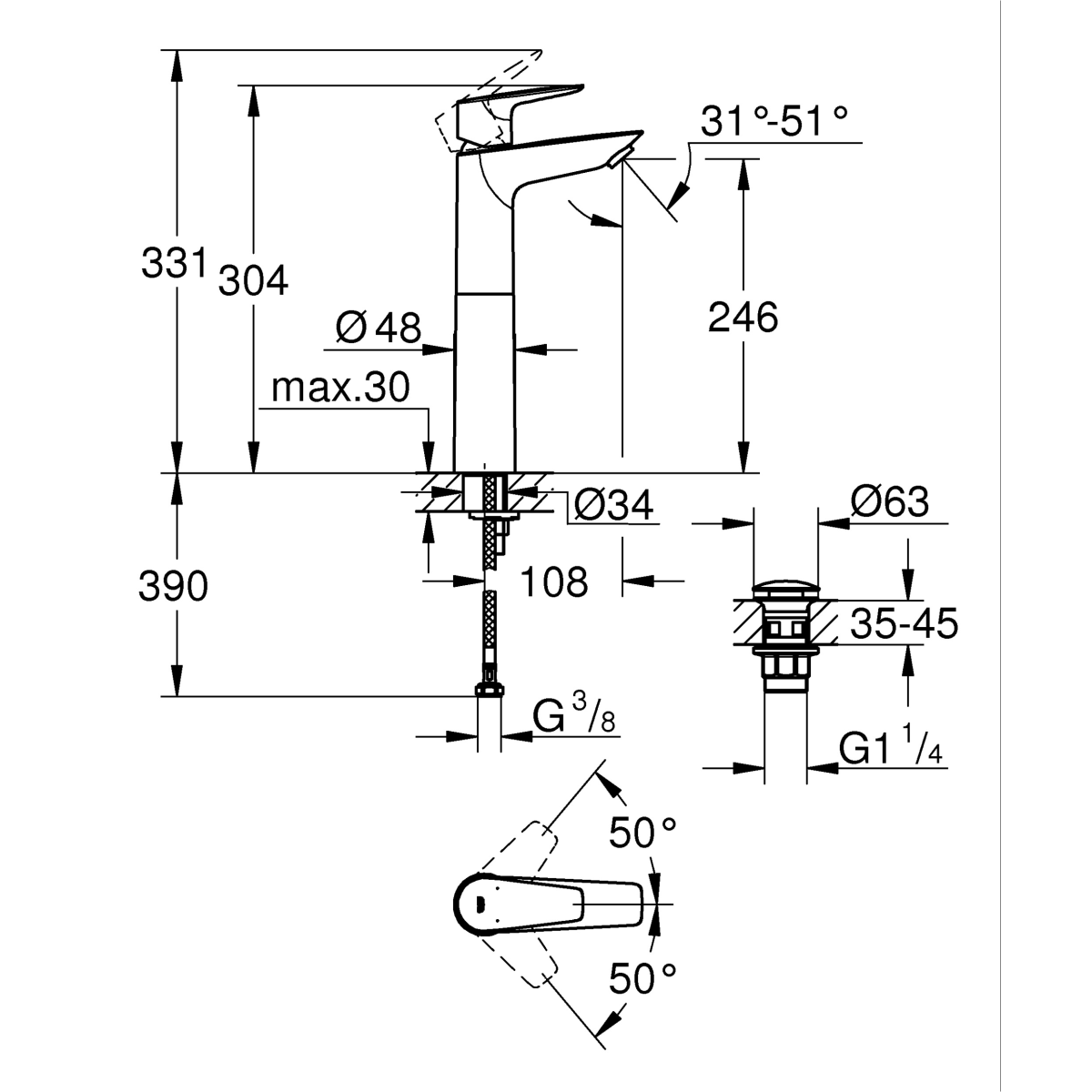 Grohe QuickFix Start Edge XL egykaros csaptelep