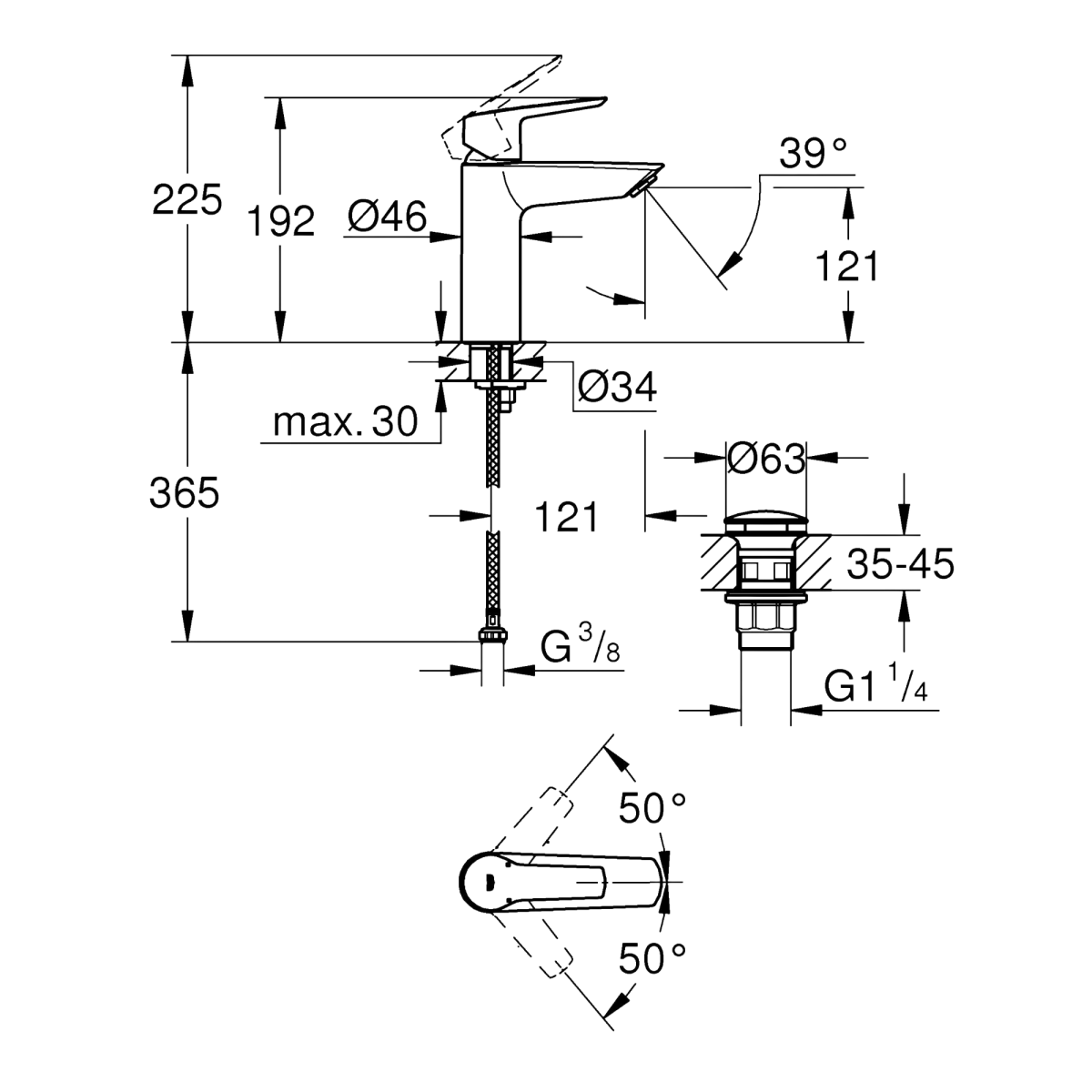 Az egyszerű egylyukas kivitel és a FastFixation rendszer gyors és problémamentes szerelést biztosít. A csomagban található a klikk-klakkos leeresztő készlet, a flexibilis bekötőtömlők és a Grohe QuickTool szerelési segédeszköz.