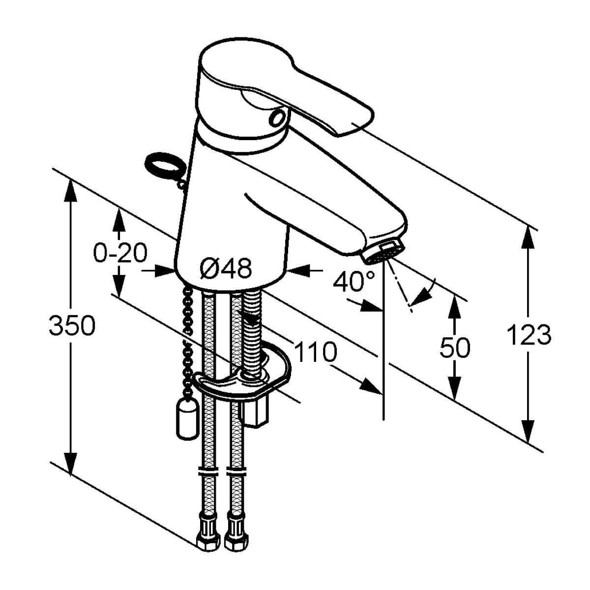 Kludi Maris egykaros mosdó csaptelep - egylyukas kivitel - ECO perlátor: M 24 x 1 - kerámia vezérlőegység - süllyeszthető lánc - flexibilis csatlakozás: G 3/8" - gyorsrögzítő rendszer - króm felület