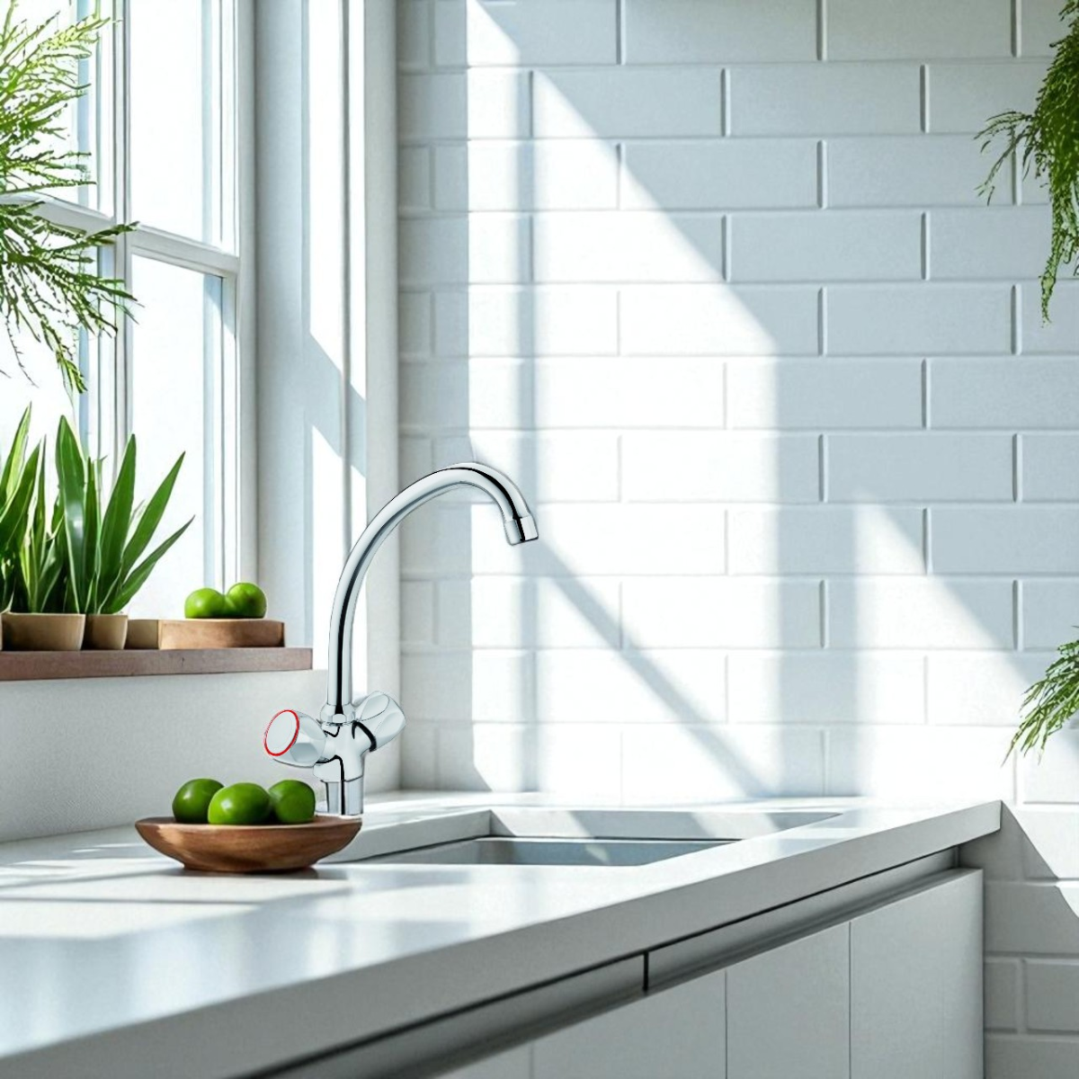 A Teno kétkaros, magas íves kialakítású csaptelep elegáns króm felülettel, klasszikus megjelenéssel és modern funkcionalitással biztosítja a kényelmes vízhasználatot a konyhában. Kétkaros keverő megoldásának köszönhetően külön szabályozhatod a hideg és meleg vizet, míg a forgatható kifolyócső nagyobb mozgásteret biztosít. Az acél (304) test és a honeycomb perlátor megbízható működést és kiegyensúlyozott vízáramlást garantál.