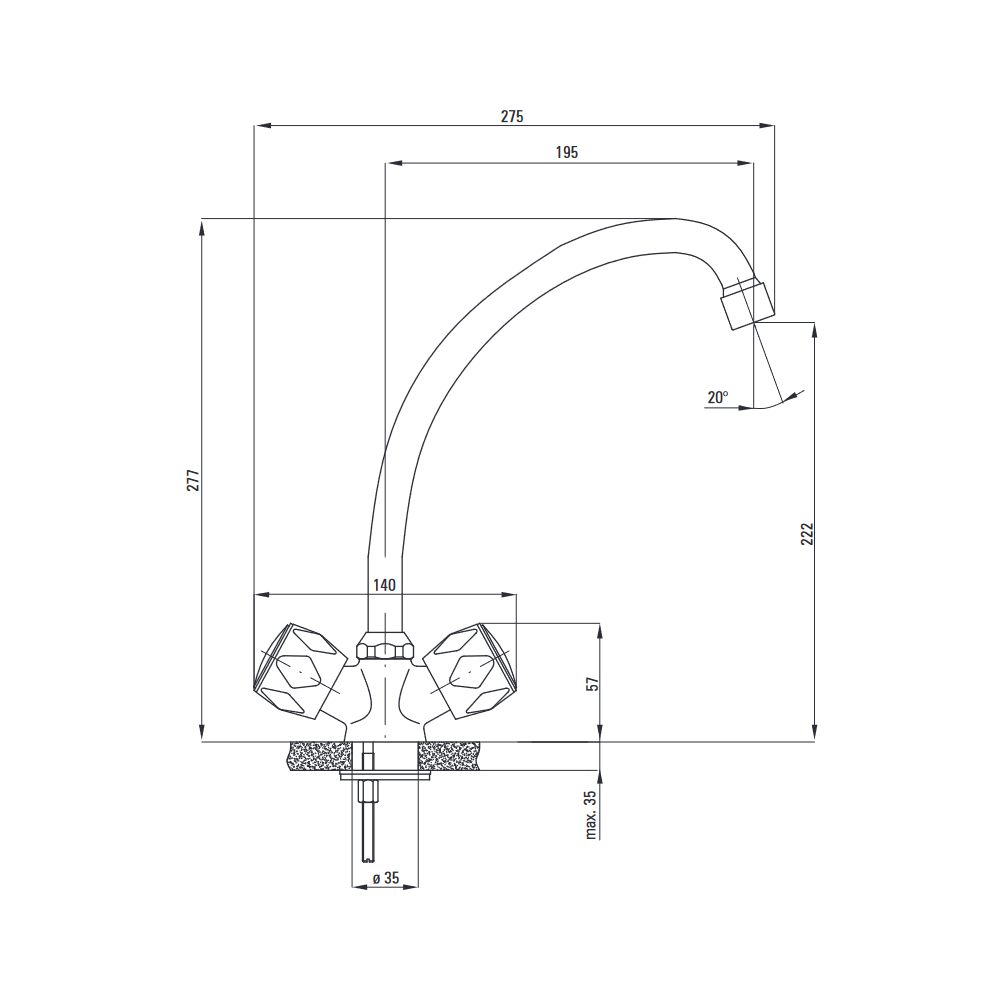 ✅ 195 mm hatótávolság – nagyobb munkaterület a mosogató körül