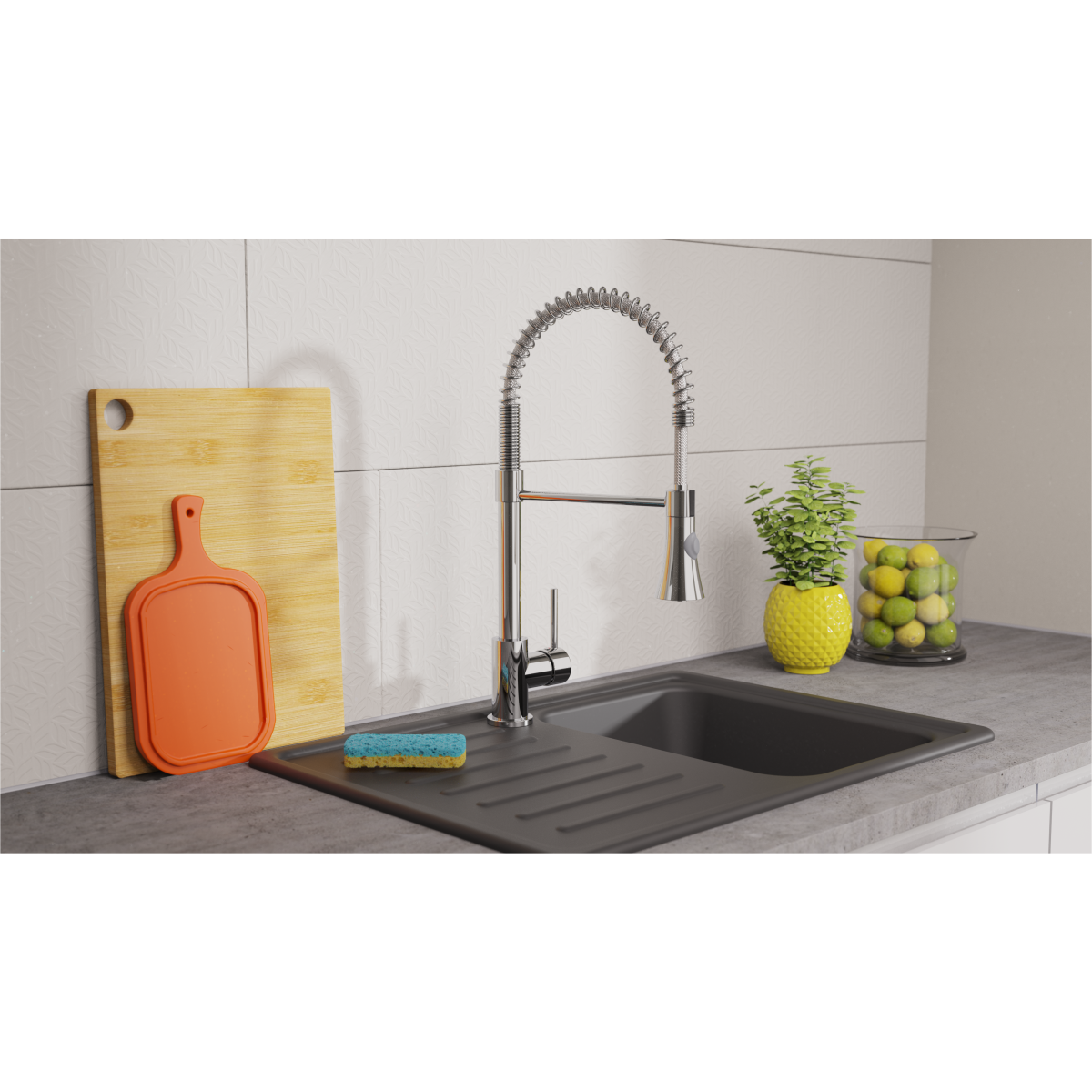 A Leon flexibilis mosogató csaptelep krómozott kivitelben készült, letisztult formával és praktikus funkcionalitással. A rugalmas csatlakozó tömlők lehetővé teszik a könnyű és sokoldalú használatot, így egyszerűbben irányíthatod a víz áramlását a mosogatás során. A modern kialakítás stílusosan illeszkedik bármely konyhai környezetbe, miközben megkönnyíti a mindennapi feladatokat.