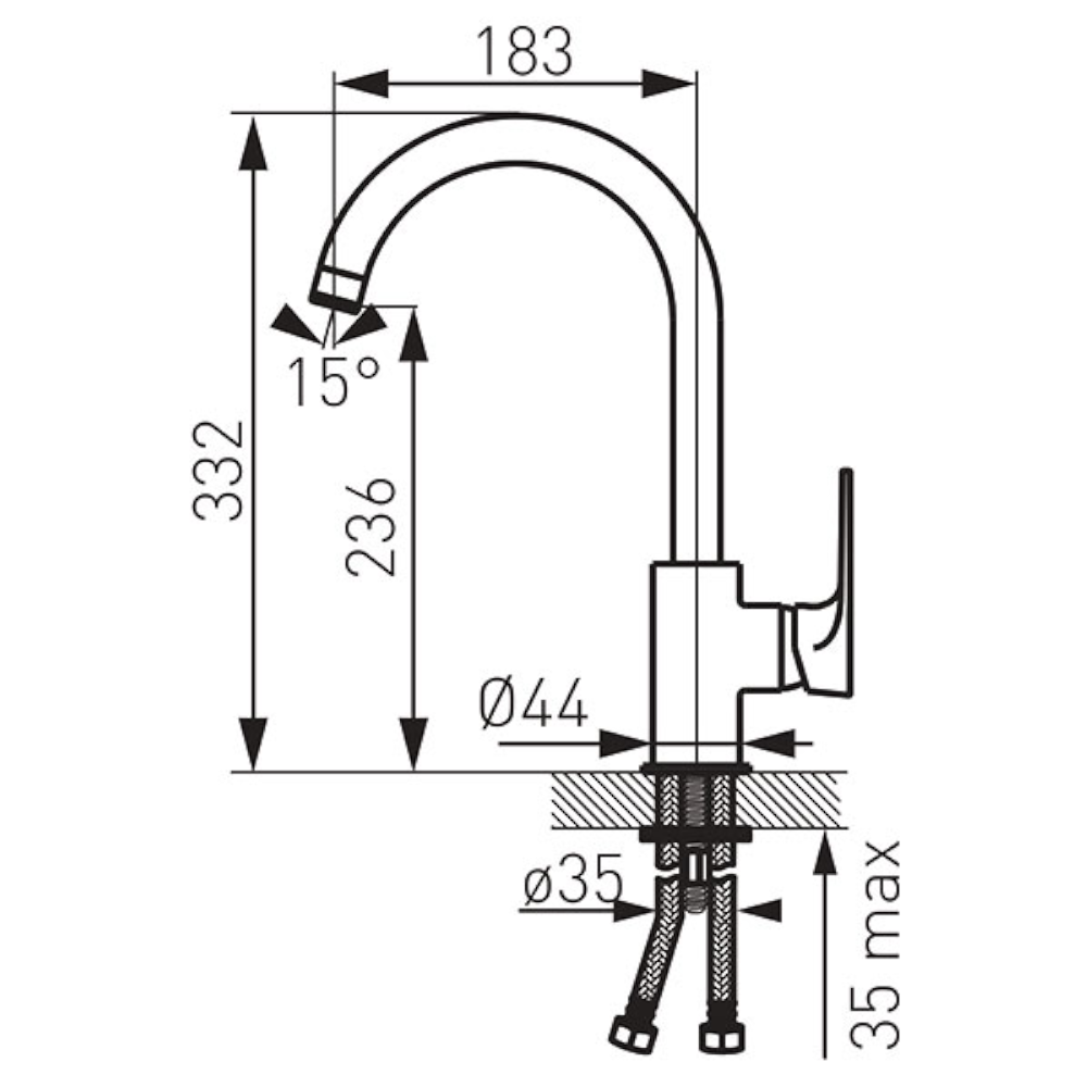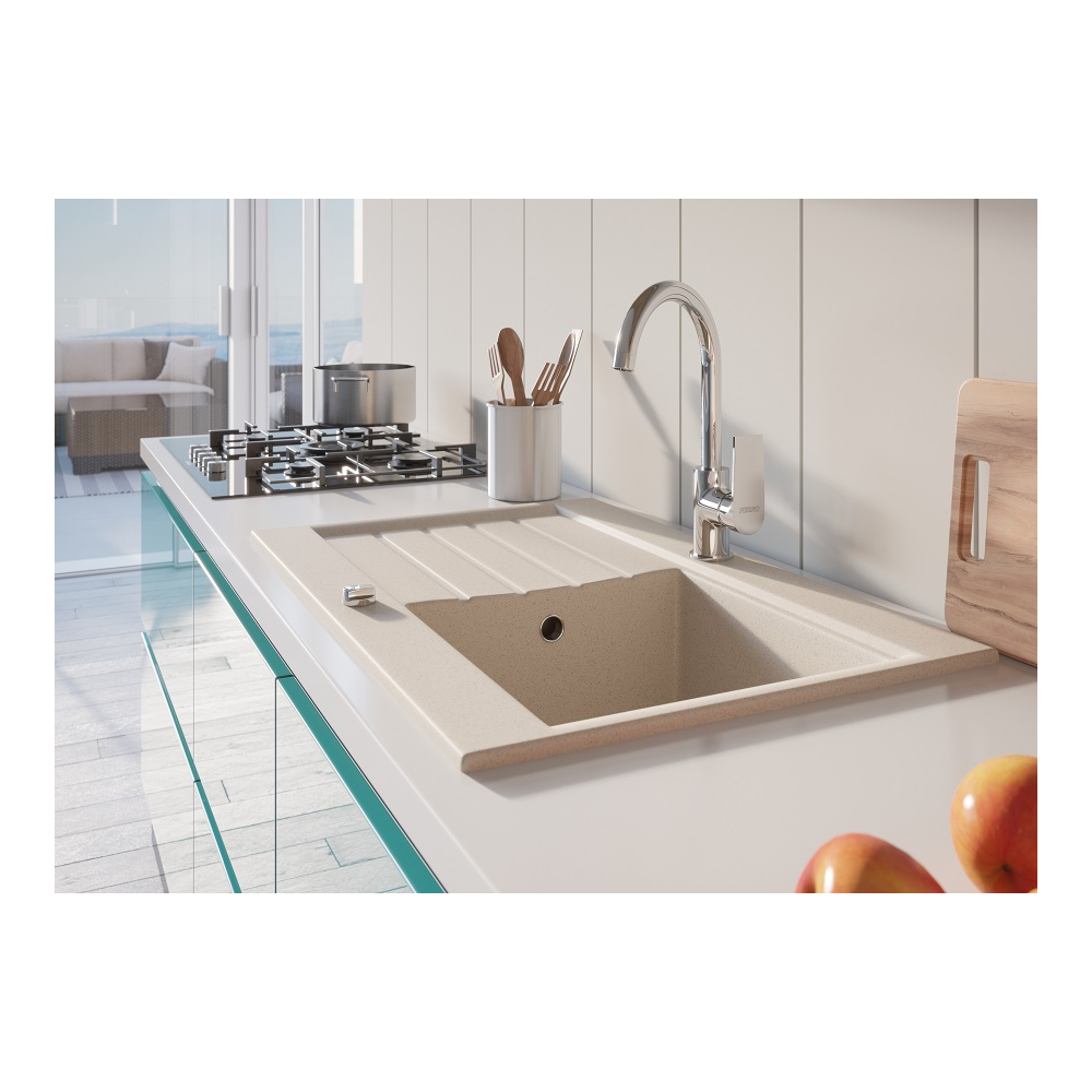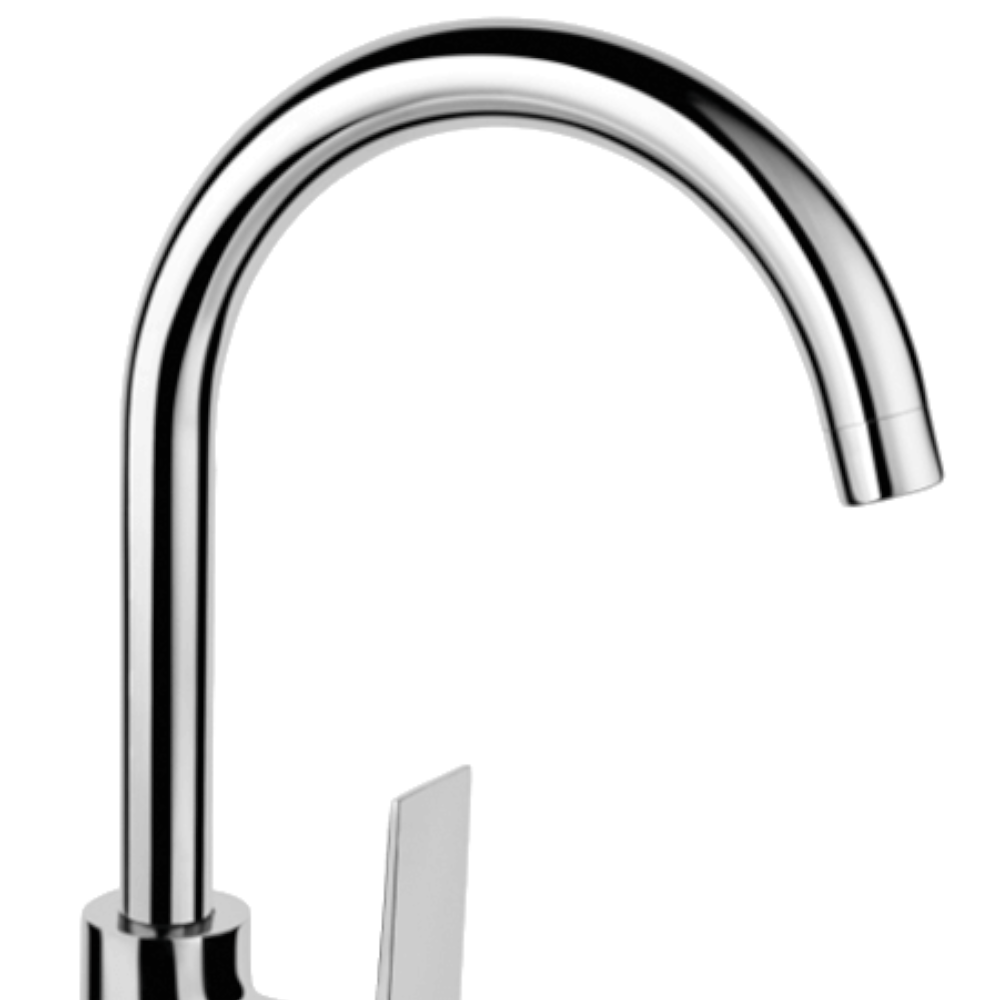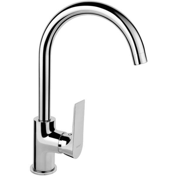 A Ferro Algeo Square króm álló csaptelep modern kialakításával stílusos kiegészítője lehet a konyhának. Magas, íves, elforgatható kifolyócsöve megkönnyíti a nagyobb edények alatti munkavégzést, a perlátor pedig víztakarékos működést biztosít. A csaptelep egyszerűen telepíthető pultba vagy mosogatóba egyaránt.