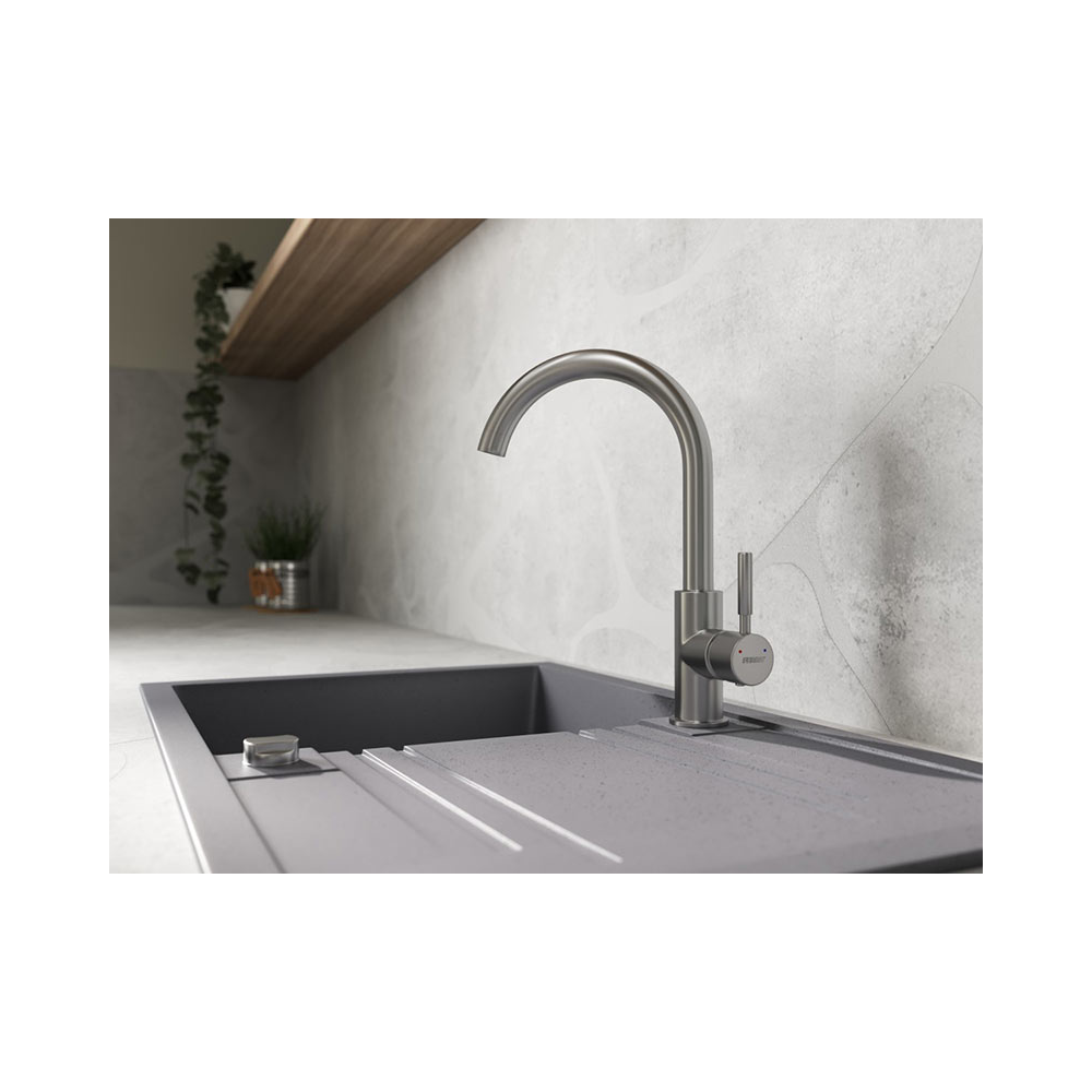 Magas íves kialakítása kényelmes használatot biztosít, elforgatható kifolyócsöve pedig ideálissá teszi dupla medencés mosogatókhoz is.