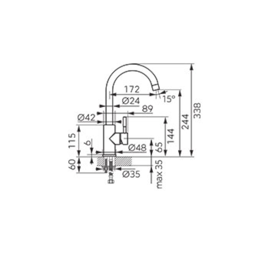 A Camira Inox egykaros, álló mosogató csaptelep praktikus és rozsdamentes megoldás a konyhai vízellátáshoz.