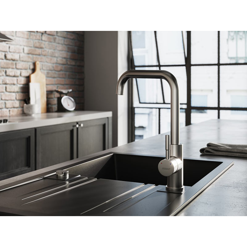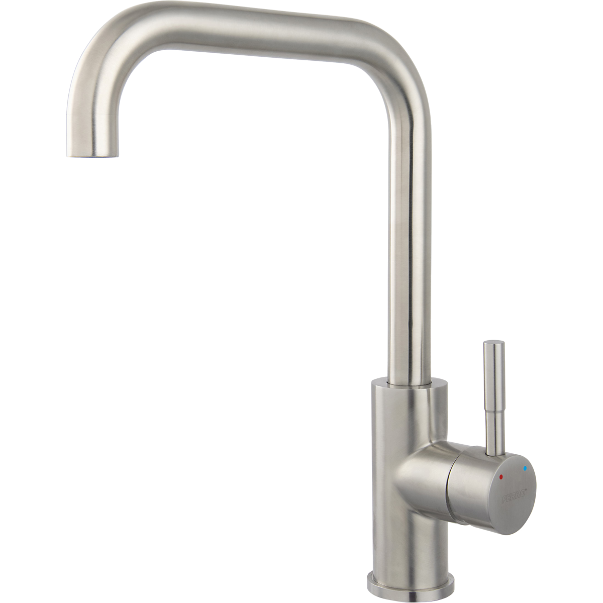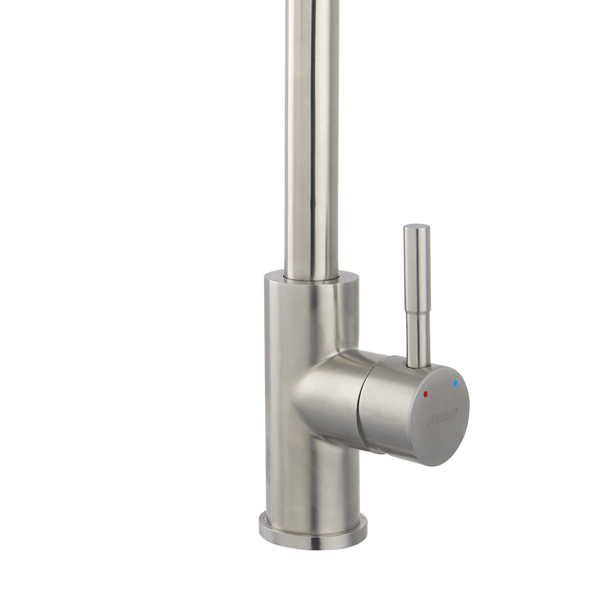 A Ferro Camiro Inox szögletes álló csaptelep letisztult formavilágával és praktikus funkcióival hatékony társad lehet a konyhai teendők során. A magas, elforgatható kifolyócső megkönnyíti a mosogatást, különösen nagyobb edények esetén. A kerámia szabályozó betét pontos vízszabályozást tesz lehetővé, míg a M22x1 perlátor hozzájárul a víz takarékosabb felhasználásához. A flexibilis bekötőcső (M10x1) gyors és egyszerű csatlakozást biztosít.