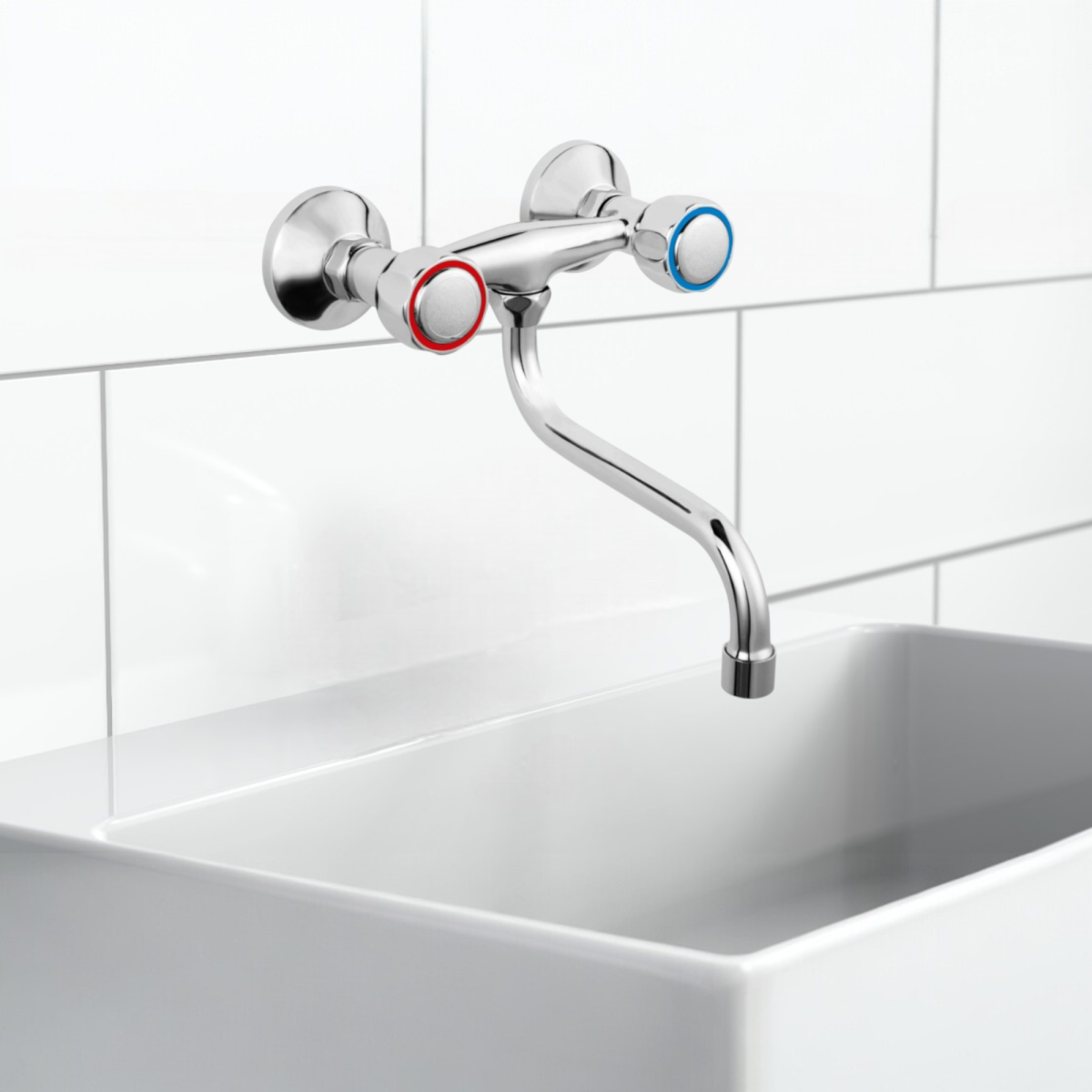 A Ferro Standard fali mosogató csaptelep megbízható, klasszikus kialakítású megoldás konyhai mosogatókhoz. Kétgombos vezérlésével egyszerűen szabályozható a vízhőmérséklet, míg a forgatható kifolyó kényelmes használatot biztosít a mindennapi mosogatás során. Időtálló króm felülete jól illeszkedik hagyományos és praktikus konyhai környezetekbe egyaránt.