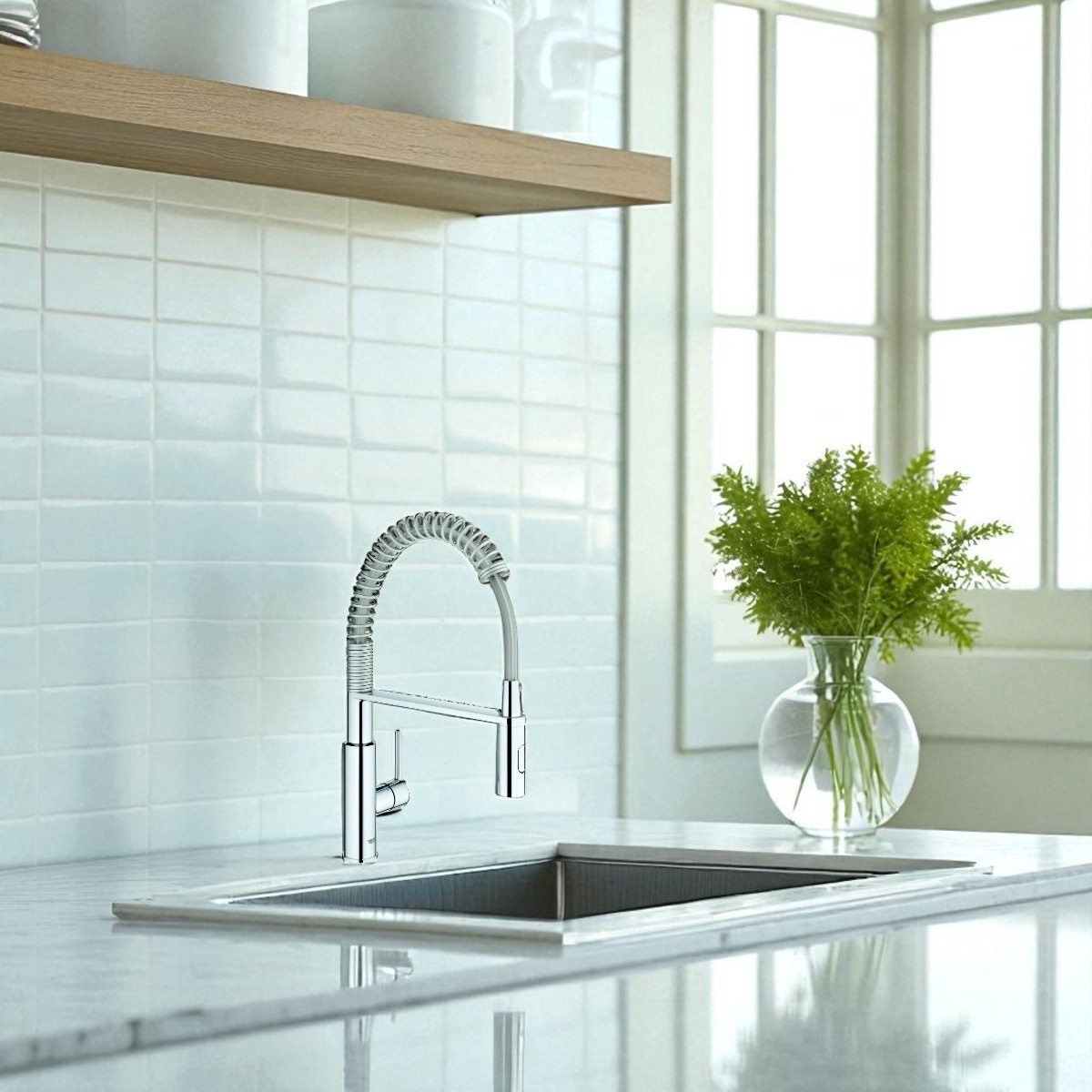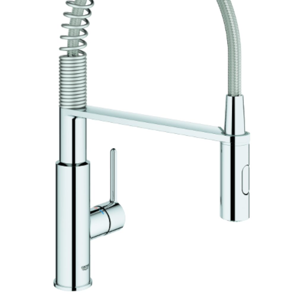 A Grohe Get Profi Spray egykaros mosogató csaptelep letisztult króm kivitelével és modern, íves kialakításával ideális választás a korszerű konyhákba. Kihúzható fejjel és kétféle vízsugár funkcióval (normál és spray mód) rendelkezik, így könnyedén alkalmazkodik a mindennapi konyhai feladatokhoz – legyen szó mosogatásról, zöldségek öblítéséről vagy edények megtöltéséről.