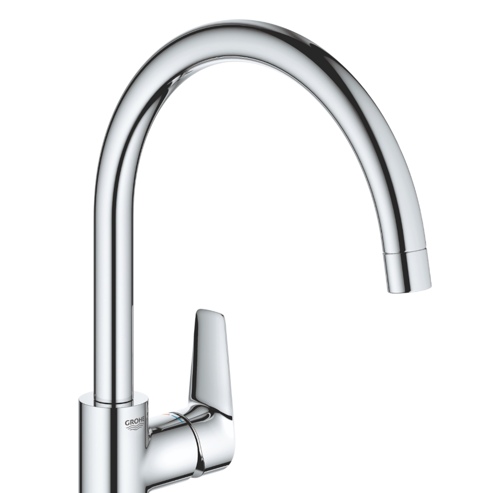 A Grohe Start Edge egykaros mosogató csaptelep megbízható megoldás modern konyhákba. Az időtállóbb Grohe StarLight krómozott felület könnyen tisztán tartható, miközben megőrzi fényét. A precíz vízszabályozást a Grohe Longlife 28 mm-es kerámia kartus biztosítja. A Grohe Zero technológia gondoskodik róla, hogy az ivóvíz ne érintkezzen ólmot vagy nikkelt tartalmazó alkatrészekkel. A Grohe QuickFix Plus rendszernek köszönhetően a szerelés gyors és egyszerű.