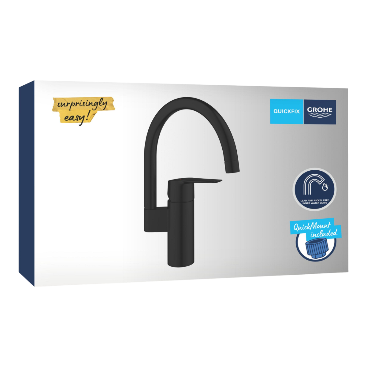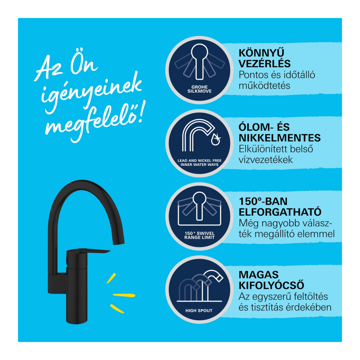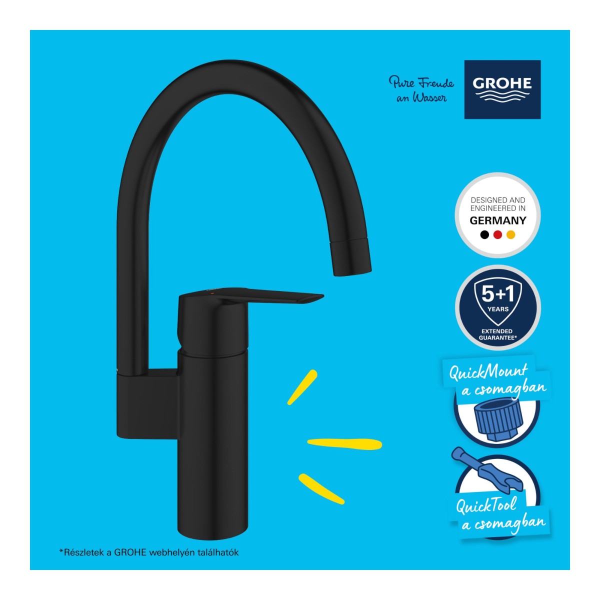 Grohe Start egykaros fekete íves magas mosogató csaptelep – Modern dizájn és precíz vezérlés a mindennapi konyhai használathoz
