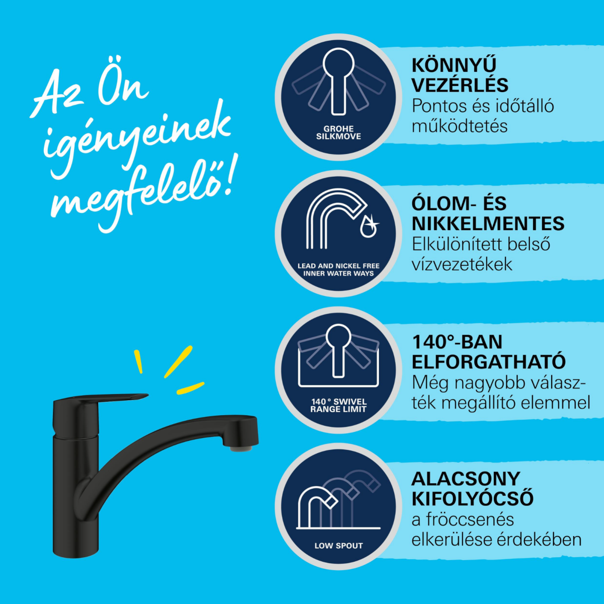 Miért a Grohe Start egykaros fekete mosogatócsaptelepet válaszd?